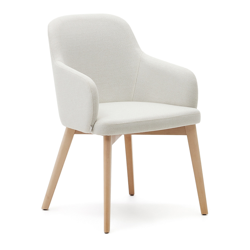 Стул Nelida из бежевой синели с ножками в натуральной отделке