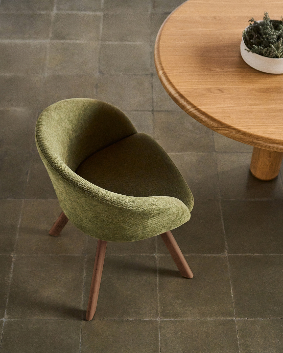 Кресло сборное, состоит из цельного сиденья в тканевой обивке и деревянной стойки из массива ясеня. Древесина имеет натуральную отделку, которая защищает от влаги и других негативных внешних воздействий.