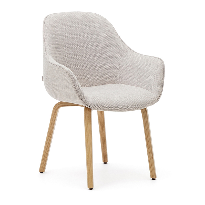 Стул Aleli из синели бежевого цвета с ножками из массива ясеня