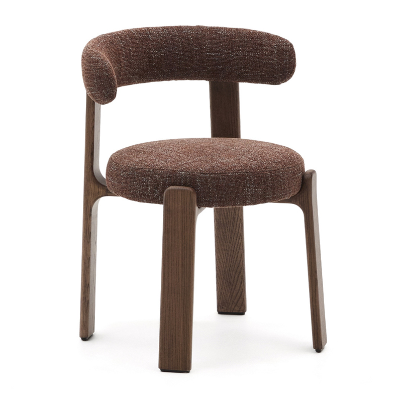 Granite Стул на 4 ножках из коричневого шенилла и массива ясеня в отделке орех