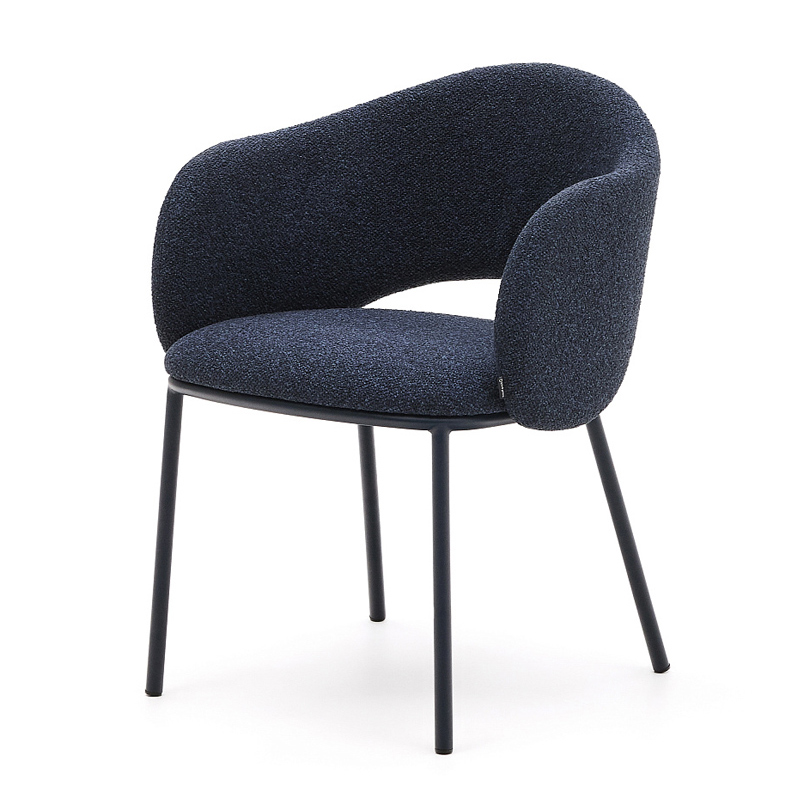 Стул Maina из плотной синей шенилловой ткани и стальными ножками с синей отделкой