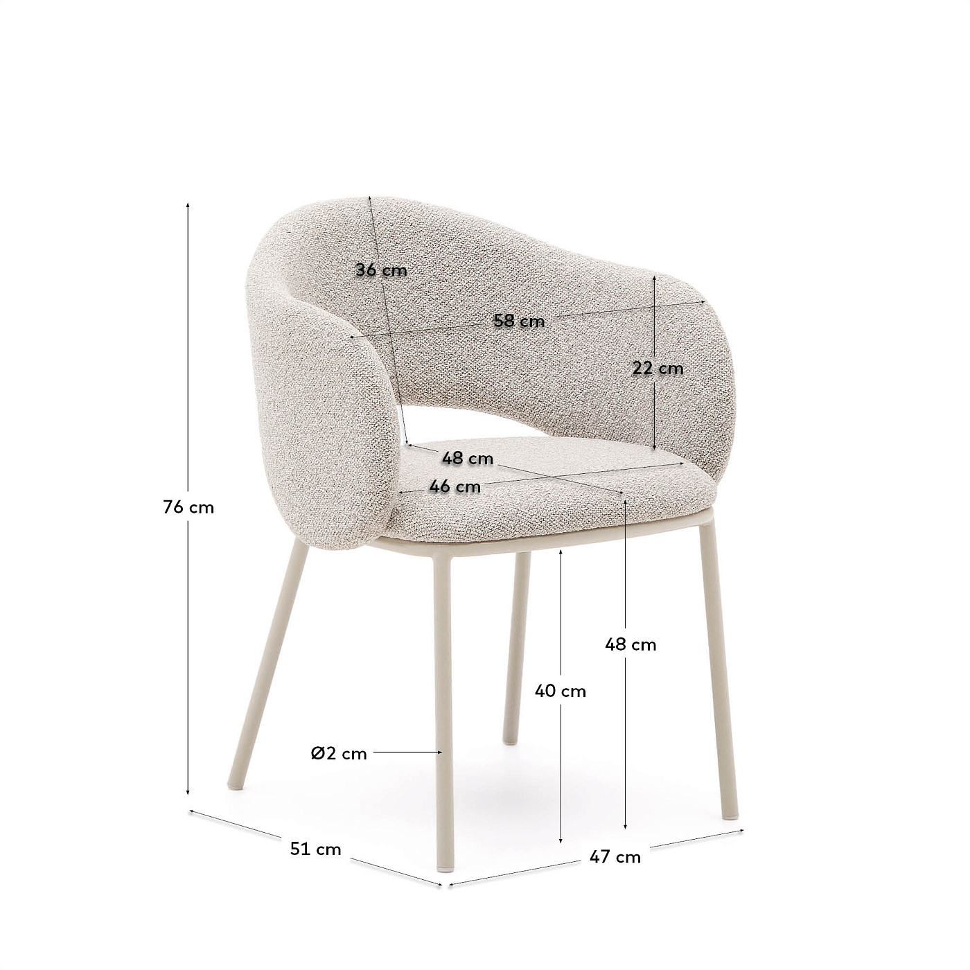 Стул Maina из плотной бежевой шенилловой ткани и стальными ножками бежевого цвета
