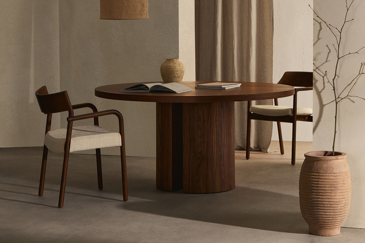 Стул Alocs из бежевой синели из массива дуба с отделкой орех FSC Mix Credit (съемный чехол)