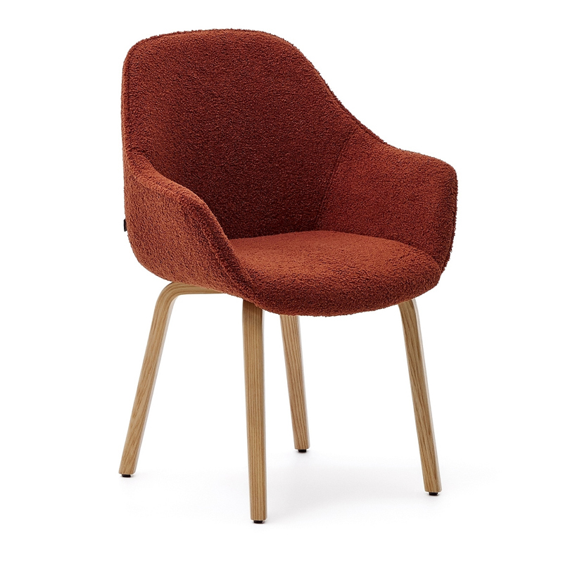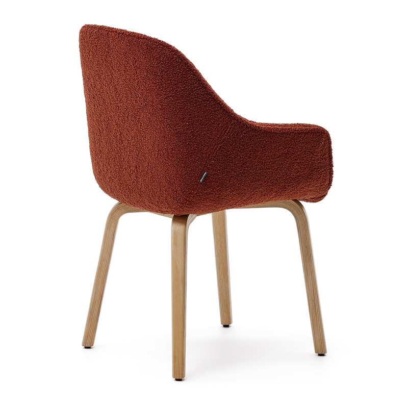 Aleli Стул из ткани букле терракотового цвета и ножками из ясеня с натуральной отделкой