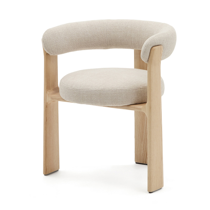 Granite Стул на 3 ножках из бежевого шенилла и массива ясеня в натуральной отделке