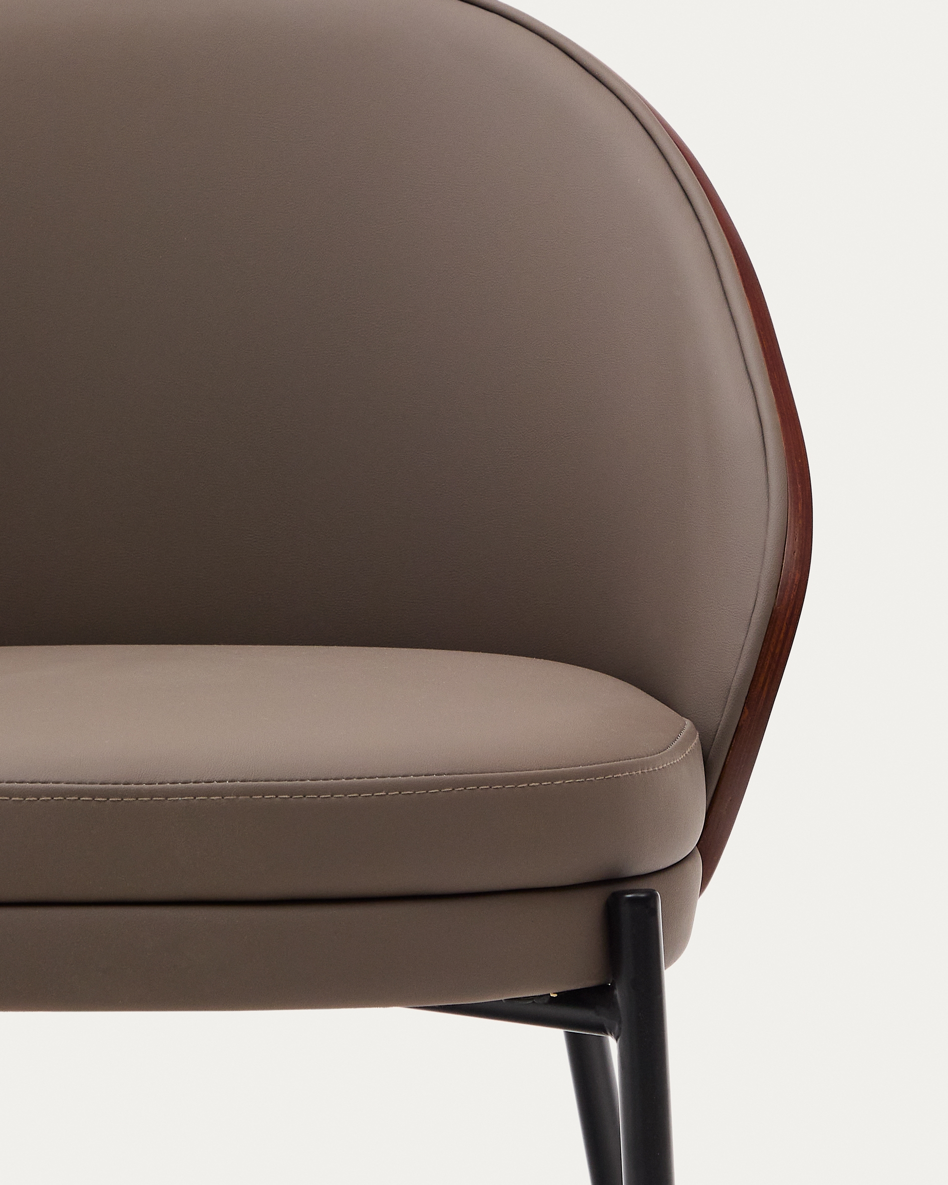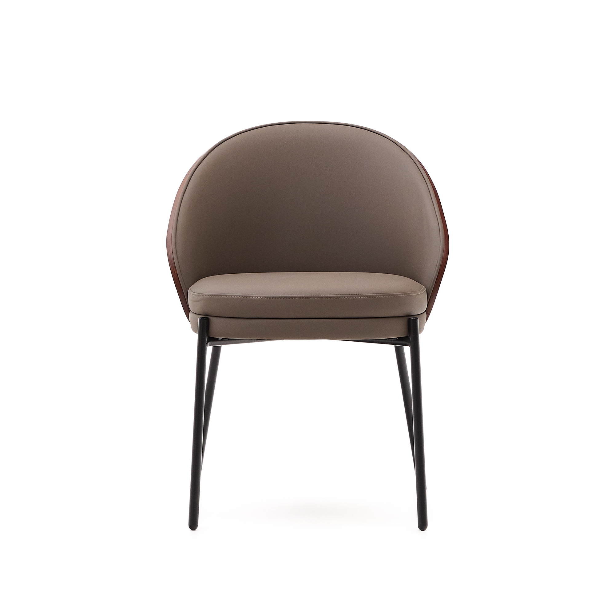 Стул Eamy из коричневой экокожи, ясеневого шпона с отделкой под орех и черного металла