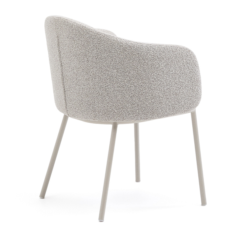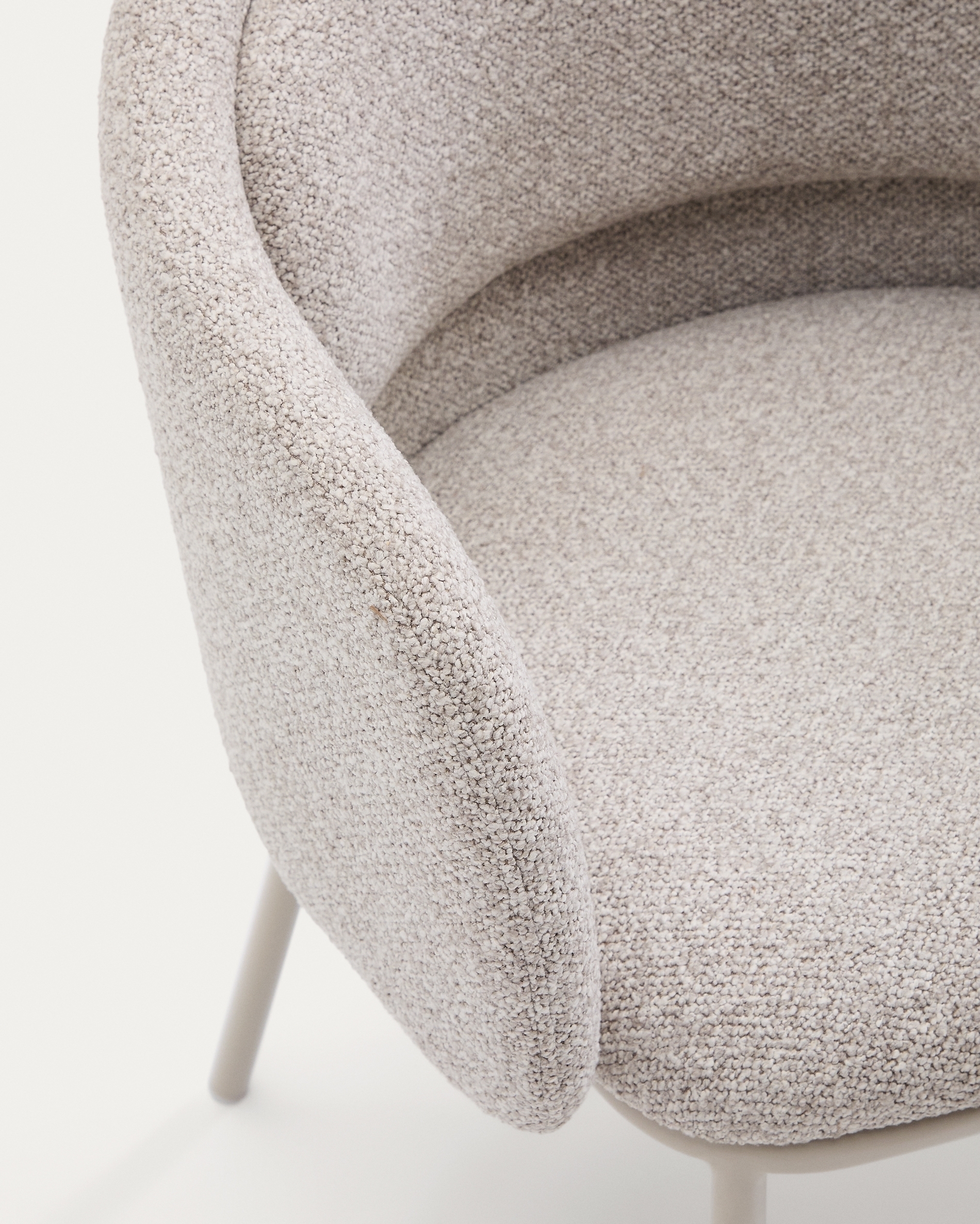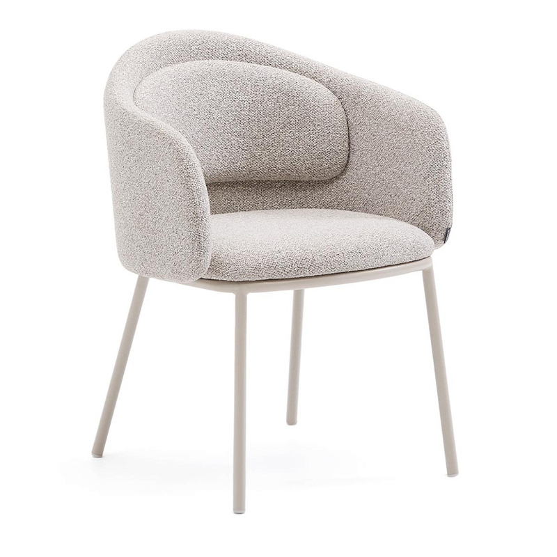 Стул Minda из плотной бежевой шенилловой ткани и стальными ножками бежевого цвета