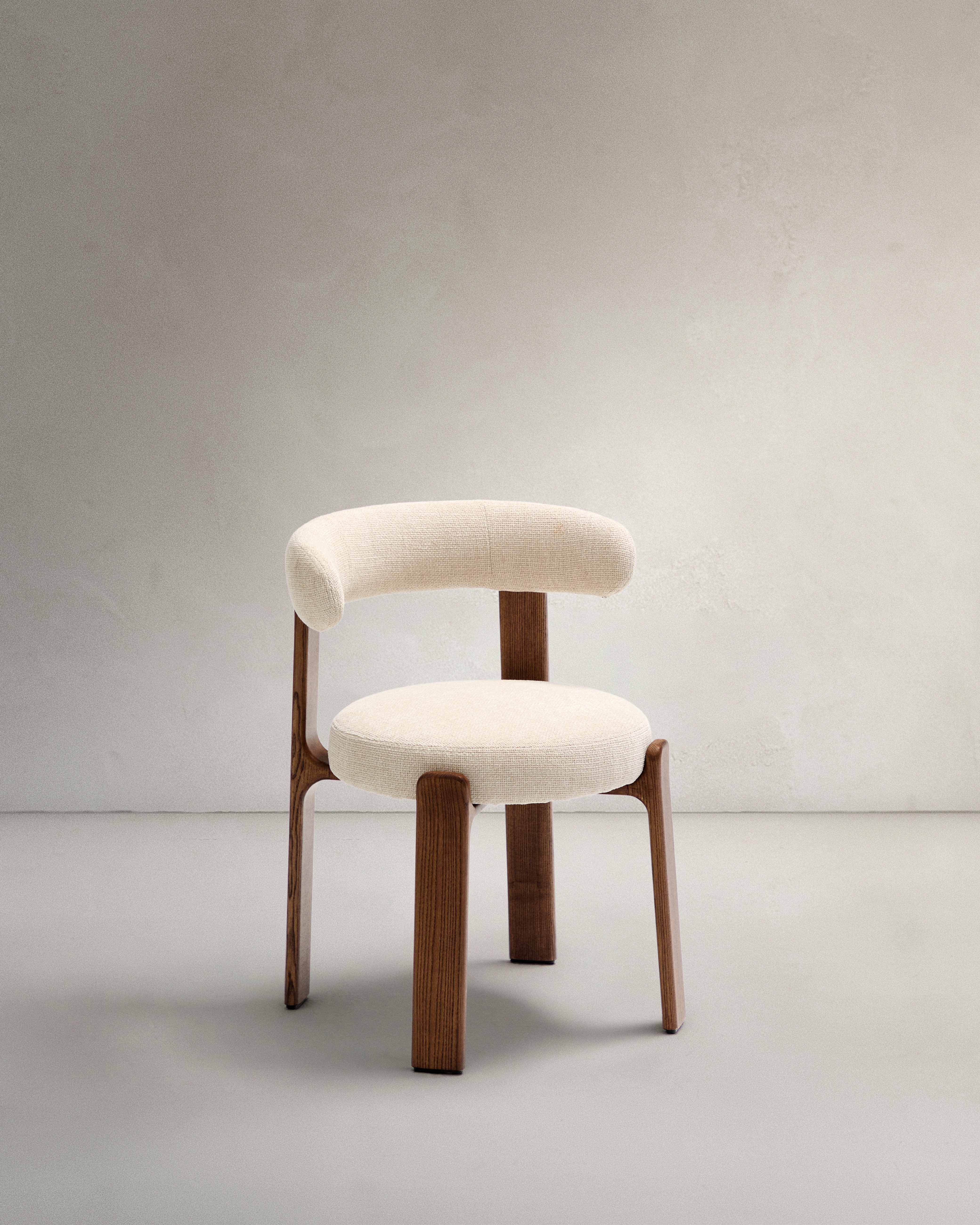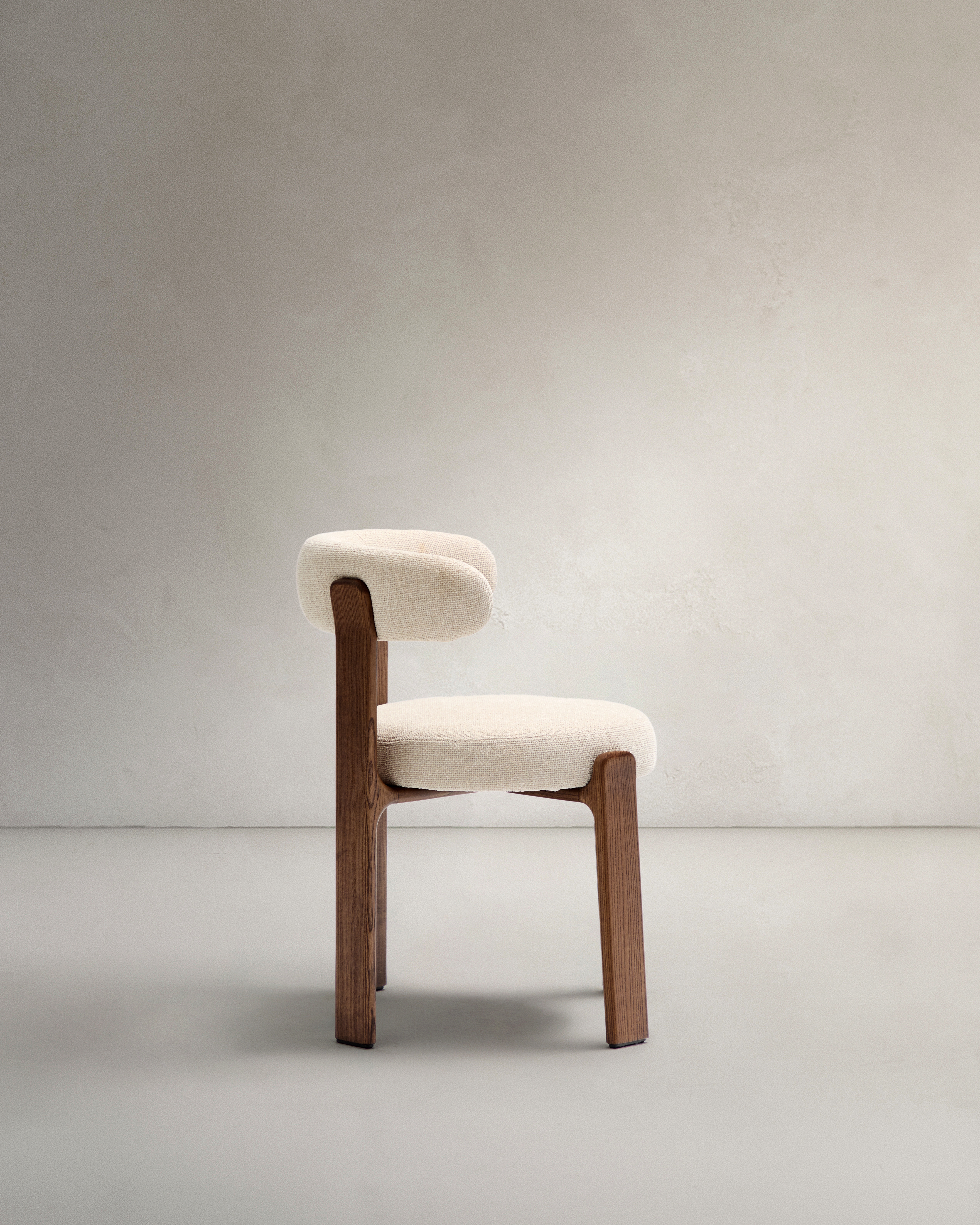 Granite Стул на 4 ножках из бежевого шенилла и массива ясеня в отделке орех