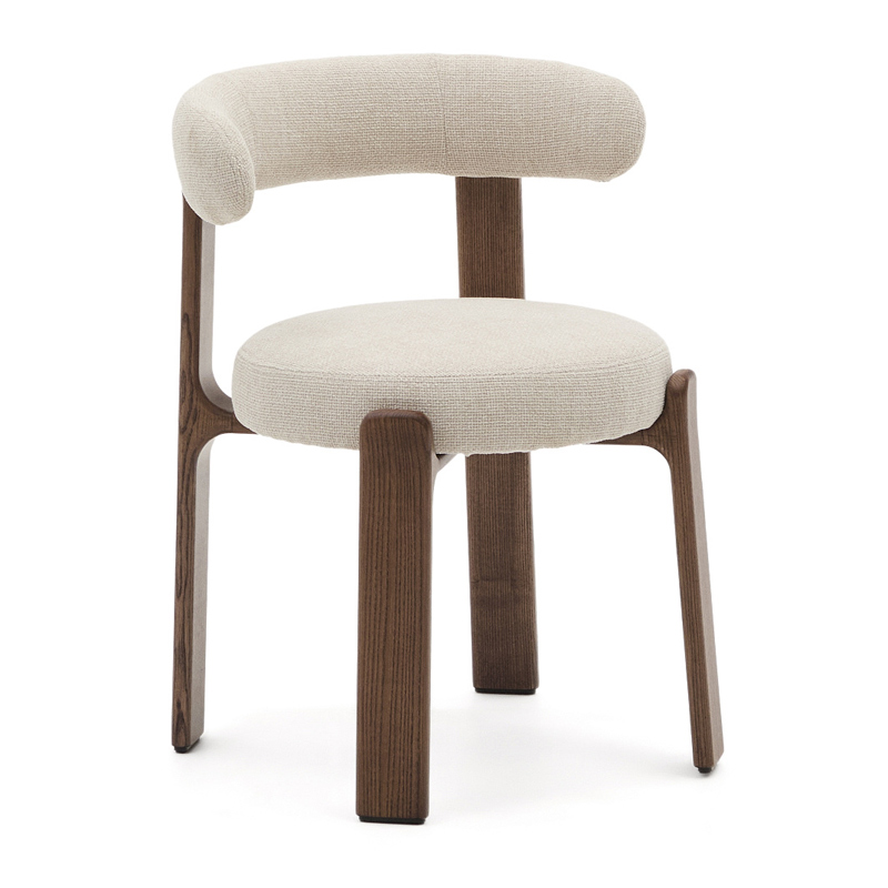 Granite Стул на 4 ножках из бежевого шенилла и массива ясеня в отделке орех