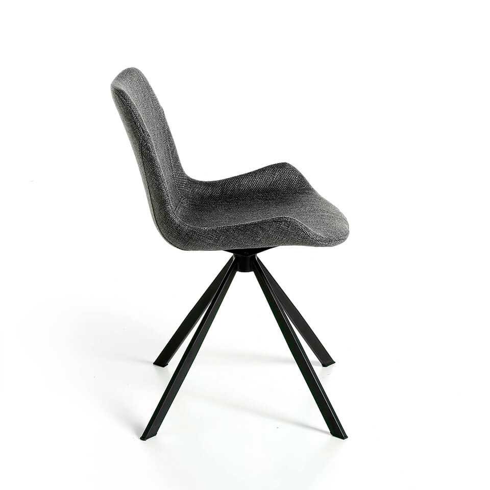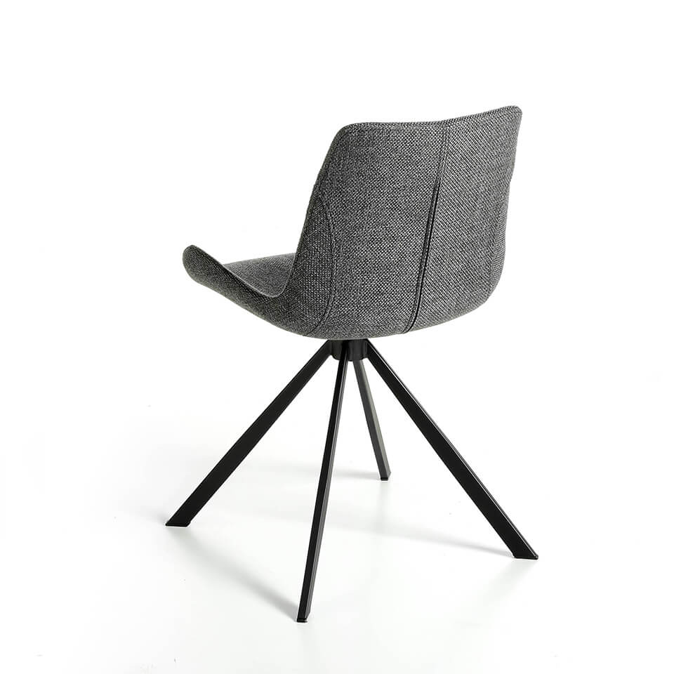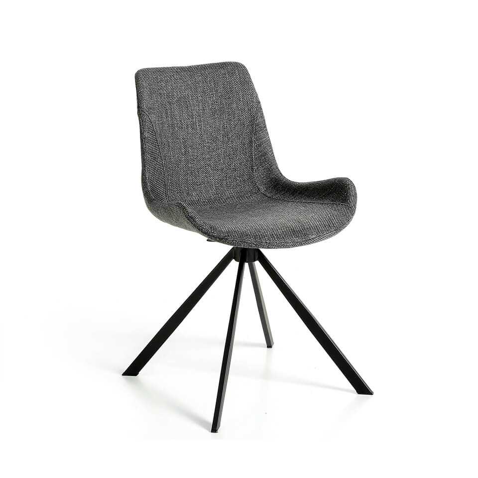 Запросить индивидуальное предложениеВращающийся стул с современным дизайном, обитый серой тканью. Модный и вневременной стиль стула с черными эпоксидно окрашенными ножками из цельной стали, который станет обязательным в вашей столовой. Его сиденье из полиуретановой пены плотностью 25 кг/м3 и дизайн добавят пространству уникальный и индивидуальный стиль, придавая ему максимальный комфорт.
