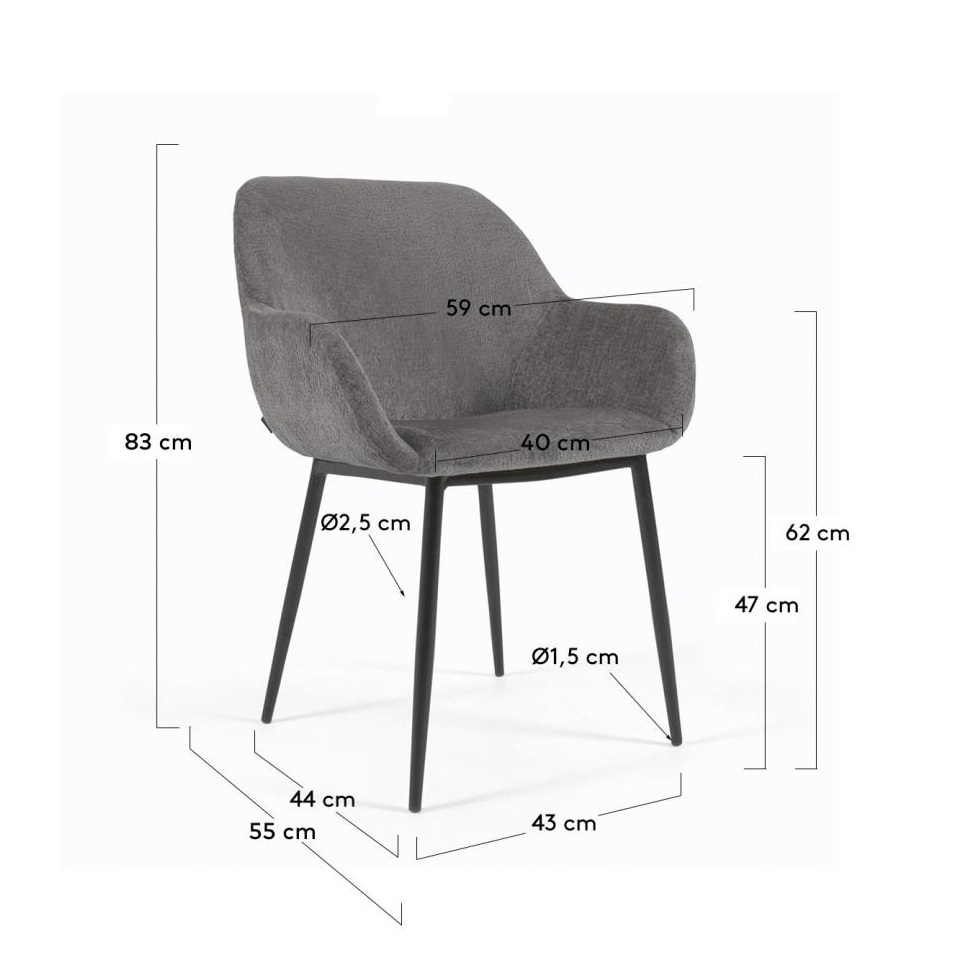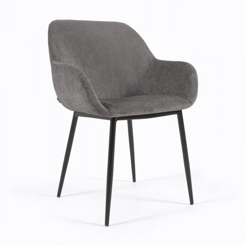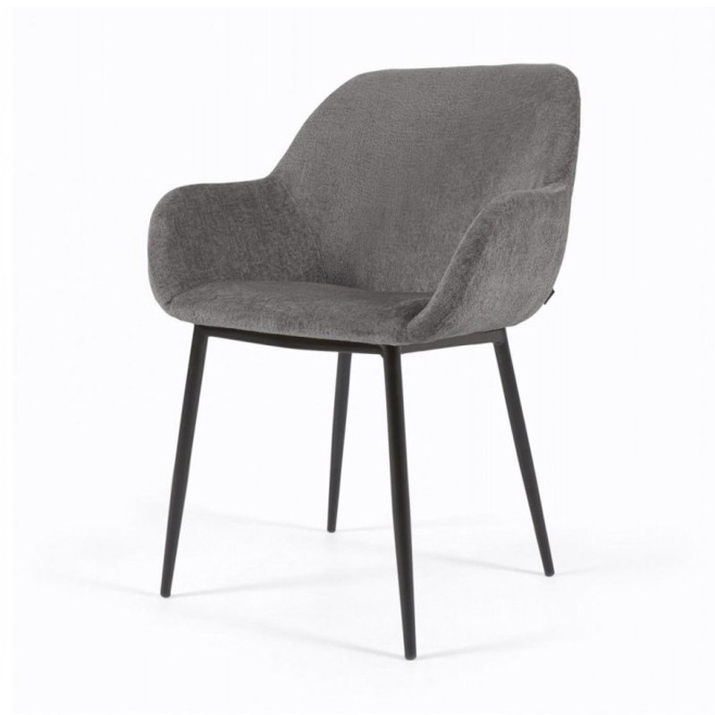 Стул Konna темно-серый из мягкой синели с черными ножками