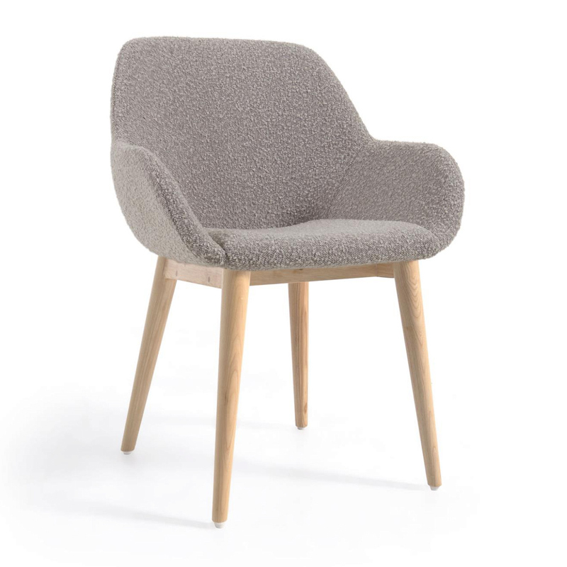 Стул Konna из светло-серой ткани букле с ножками из массива ясеня