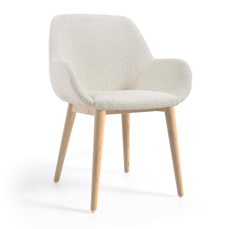Стул Konna из белой ткани букле с ножками из массива ясеня