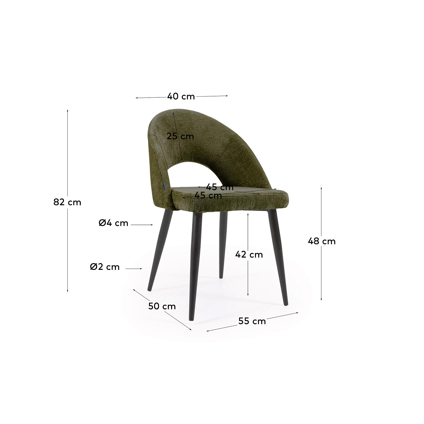 Запросить индивидуальное предложениеБархатный Стул Mael от фабрики La Forma (ex Julia Grup) – мягкая фактура и авангардный дизайн. Бархатный Стул Mael очарует своим видом с первого взгляда. Его дизайн навеян эпохой 60-х годов прошлого столетия, а бархатная фактура демонстрирует мягкость и домашний комфорт. Стул прекрасно впишется в современную городскую обстановку, добавит стиль и индивидуальность. Ваше пространство будет бесподобным! Стул состоит из каркасного сиденья и металлической опоры. Сиденье смягчено искусственным наполнителем – пенополиуретаном. Материал обивки – плотная синтетическая ткань с бархатной фактурой. Характеристики обивки: состав – 100% полиэстер, тип – саржа, плотность – 445 г /м2, износостойкость (циклы Мартиндейла): > 100.000 Ткань отлично справляется с негативными факторами при эксплуатации – не скатывается, не выгорает под воздействием ультрафиолетовых лучей. Опора сделана из металла и окрашена в черный цвет матовой порошковой краской. Но конусообразных ножках высотой 42 см установлены специальные наконечники, которые не портят напольное покрытие. Максимальная допустимая нагрузка – 130 кг. Размеры: ширина – 55 см, высота – 82 см, глубина – 50 см. Вес – 7.1 кг. Данная модель представлена в двух цветах – сером и темно-зеленом. Также есть аналогичные модели с текстильной обивкой. Потребуется минимальная сборка.