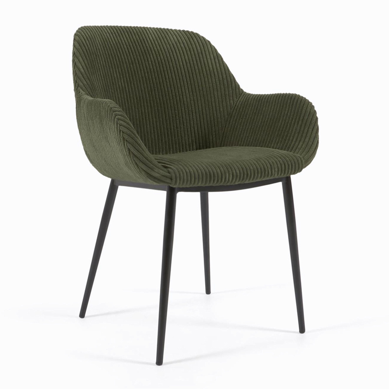 Стул Konna из толстого вельвета темно-зеленого цвета со стальными ножками с черной отделкой