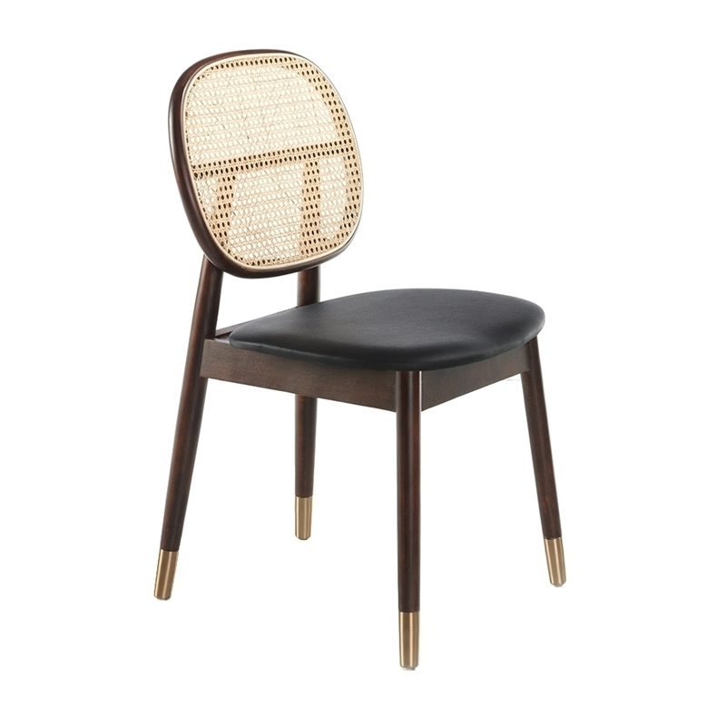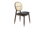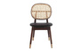 Конструкция стула сделана из массива ясеня, который окрашен в темно-коричневый цвет и покрыт защитным лаком. Спинка вручную сплетена из ротанга, оформлена деревянной рамой.