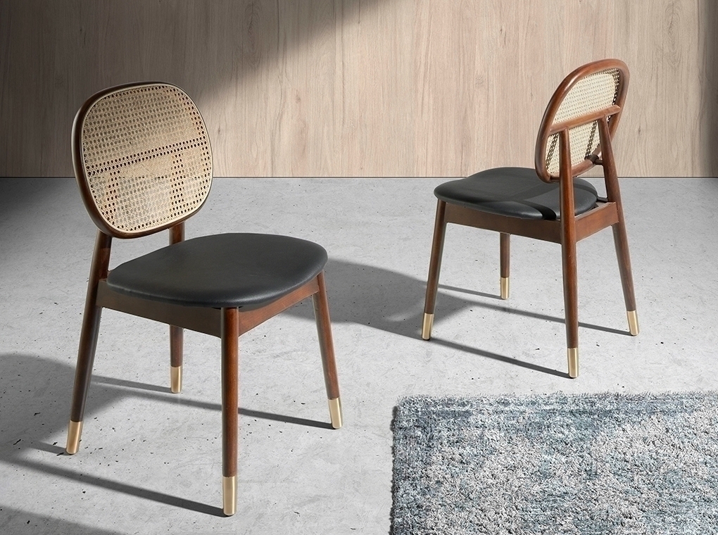 Стул DC1599 бесподобный в своем исполнении. Его эффектный внешний вид во многом обеспечен красотой и уникальностью дерева. Здесь это потрясающий массив ясеня и индивидуальный ротанг. В качестве «вишенки на торте» дизайнерами предложены позолоченные наконечники на ножках. И в завершении, кожаная подушка, без которой удобство было бы неполноценным. Наслаждайтесь видом и комфортом – стул DC1599 сделан для вас!
