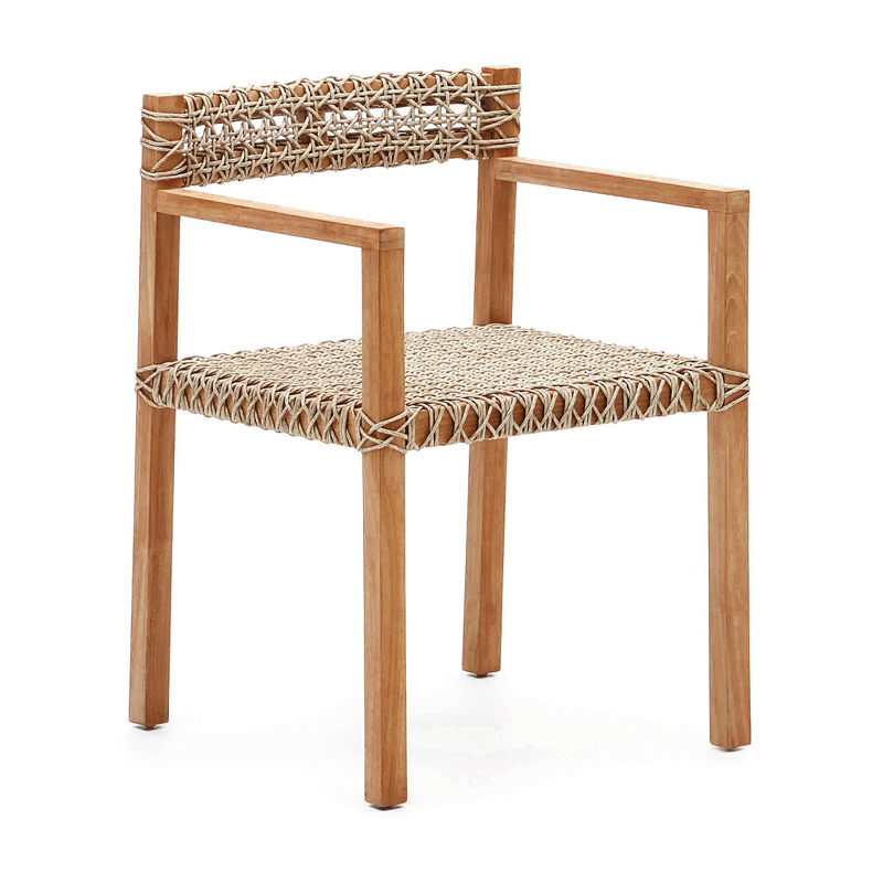 Запросить индивидуальное предложениеGiverola Стул от фабрики La Forma (ex Julia Grup) – массив тика с веревочным сиденьем. Стул Giverola – это колониальный дизайн с необычной геометрией. Он изготовлен из массива тика – натурального материала, идеально подходящего для стильного наслаждения вашим домом. А еще – это уникальный вид со своей тональностью и рисунком. Giverola легко превратит вашу обычную террасу в особенную! Стул имеет полностью деревянный каркас. Его форма имеет несколько эргономичных особенностей, которые обеспечат удобство при использовании (наличие подлокотников, изогнутая спинка). Материал изготовления – древесина тика, которая покрыта лаком для защиты от солнца и дождя. Сиденье и спинка имеют плетеную структуру. Она выполнена из особой прочной синтетической веревки, которая не портится от влаги, не выгорает на солнце. Для устойчивости на неровной поверхности на каждой ножке установлен пластиковый наконечник. Максимальная нагрузка – 130 кг. Размеры: ширина – 53 см, высота – 76 см, глубина – 52 см. Вес изделия – 5,8 кг Рекомендации по уходу: чистка мягким моющим средством, не использовать без навеса в сезон дождей.