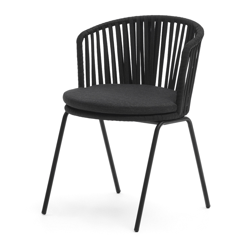 Запросить индивидуальное предложениеСадовый стул Saconca от фабрики La Forma (ex Julia Grup) – для ужинов дома или на свежем воздухе. Стул Saconca придаст непринужденный вид обстановке, благодаря спинке из шнура ручной работы. Он идеально подойдет для долгих послеобеденных бесед на балконе, террасе или в саду. Защищенность материалов от различных атмосферных воздействий подарит вам чувство уверенности в том, что дружба с Saconca будет долгой. Конструкция стула металлическая, с матовым порошковым покрытием. На трубчатых ножках диаметром 2 см установлены пластиковые наконечники для улучшения устойчивости на неровной поверхности. Спинку и сиденье образует плетение из особо прочной веревки. Сиденье дополнено подушкой. Ее чехол сшит из прочной полиэстеровой ткани, защищенной от выгорания цвета. Наполнитель – пена плотностью 25 кг/м3. Общая максимальная нагрузка – 130 кг. Вес изделия – 5 кг. Размеры: ширина – 56 см, глубина – 59 см, высота – 77 см. В коллекции Saconca стул представлен в трех цветах – черном, бежевом и сером. Стул не использовать в сезон дождей. Чистить мягким моющим средством без отбеливателей и абразивов.