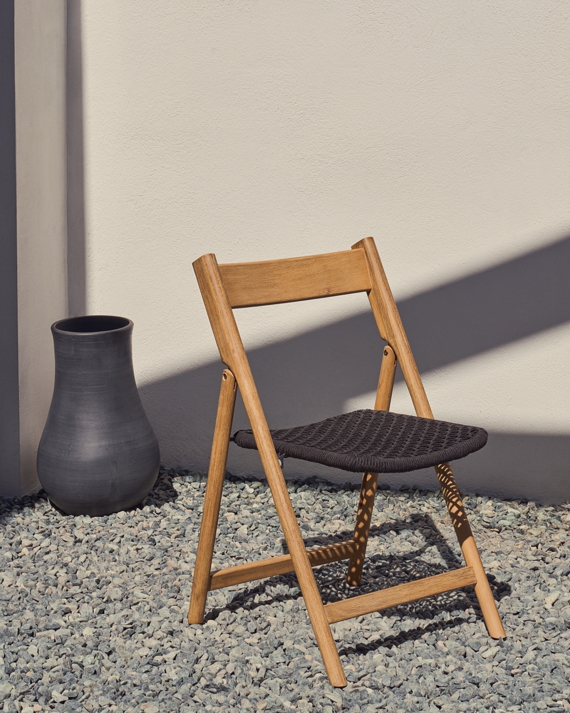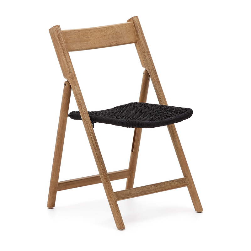 Складной стул Dandara из массива акации со стальной конструкцией и черным шнуром