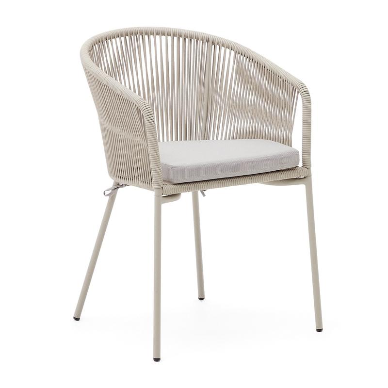 Стул Yanet с синтетической веревкой цвета экрю и ножками из оцинкованной стали