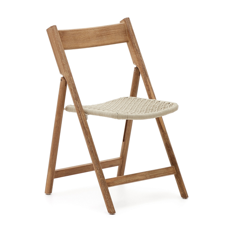Складной стул Dandara из массива акации со стальной конструкцией и белым шнуром