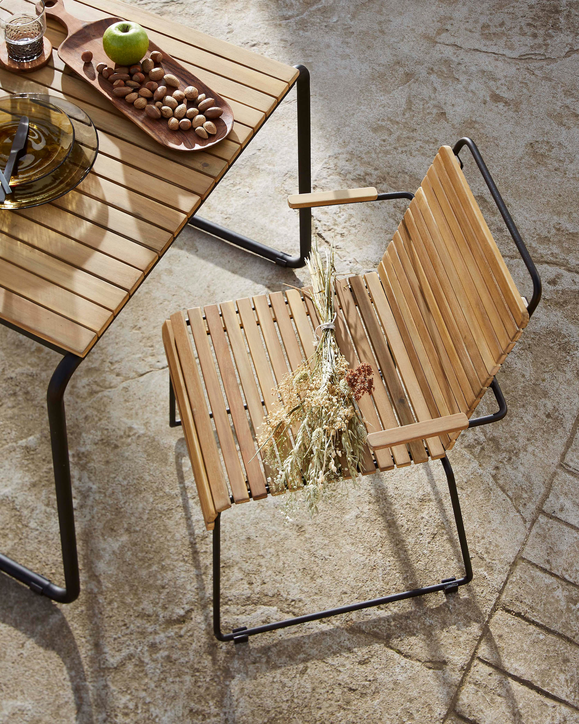 Стул Yukari - это творение дизайнера Тапио Анттила для Kave Home. Спинка, сиденье и подлокотники изготовлены из цельного дерева акации с отделкой из тикового дерева, которая отлично подходит как для наружного, так и для внутреннего использования. Его конструкция изготовлена из оцинкованной стали, более устойчива к ржавчине и коррозии, чем обычная сталь, а также может противостоять ультрафиолетовому излучению. Дизайнерский образец, который является экологически чистым, поскольку он имеет сертификат FSC, гарантирующий, что древесина поступает из лесов с устойчивыми рубками.
