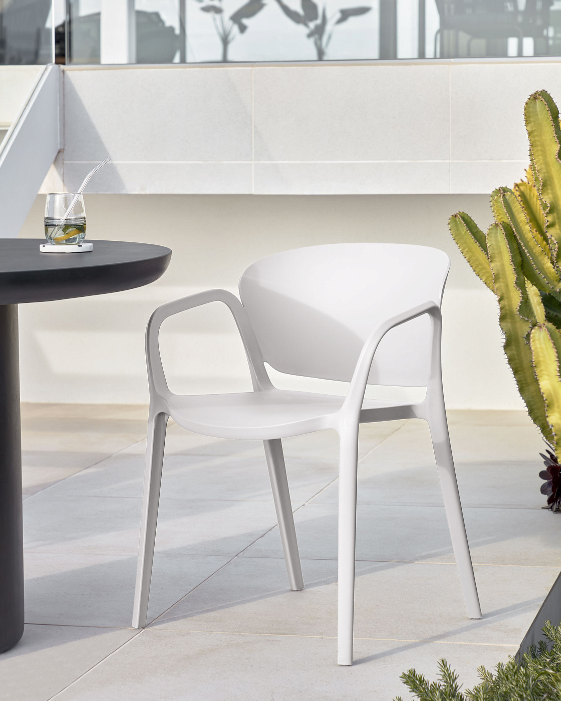 Уличный стул Ania безупречен для обустройства вашей террасы. Он имеет отличную эргономичную форму, сделан из прочного и практичного переработанного пластика, предлагается сразу в четырех цветах. У вас небольшая площадь? Эта модель прекрасно штабелируется и при необходимости быстро освободит пространство. Чудесное интерьерное решение во всех смыслах!