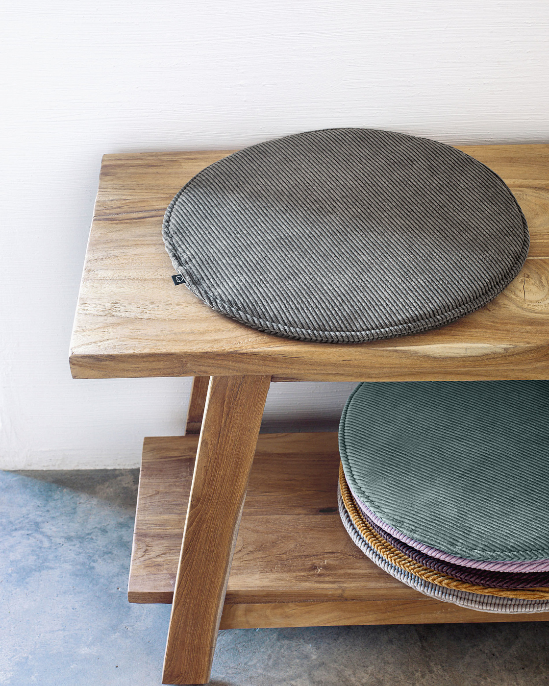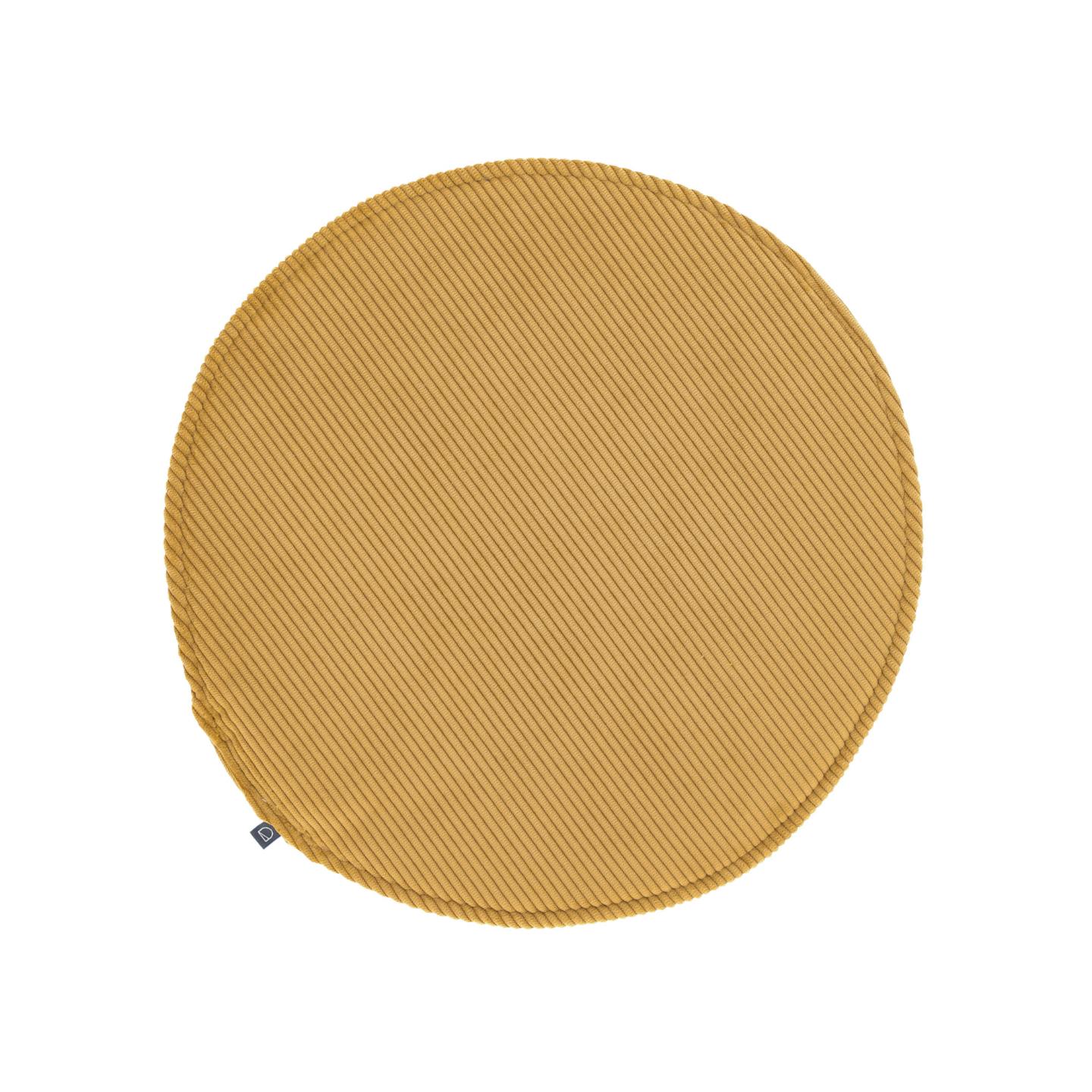 Круглая вельветовая подушка на стул Sora горчичная 35 см