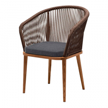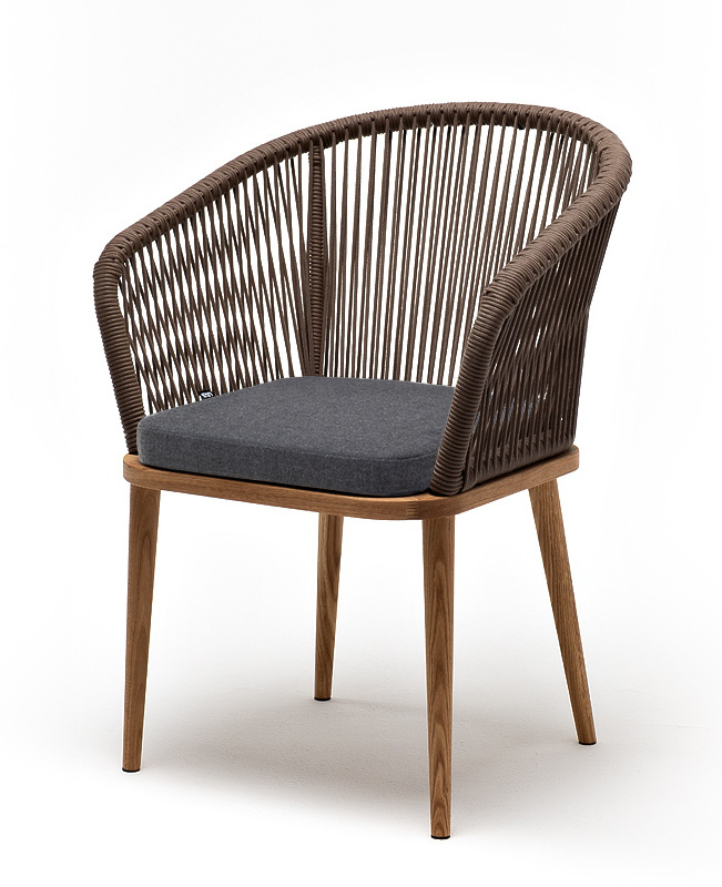 "Марсель" стул плетеный из роупа, основание дуб, роуп темно-серый круглый, ткань темно-серая 027