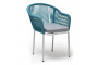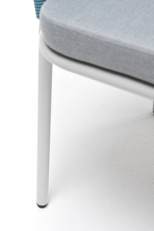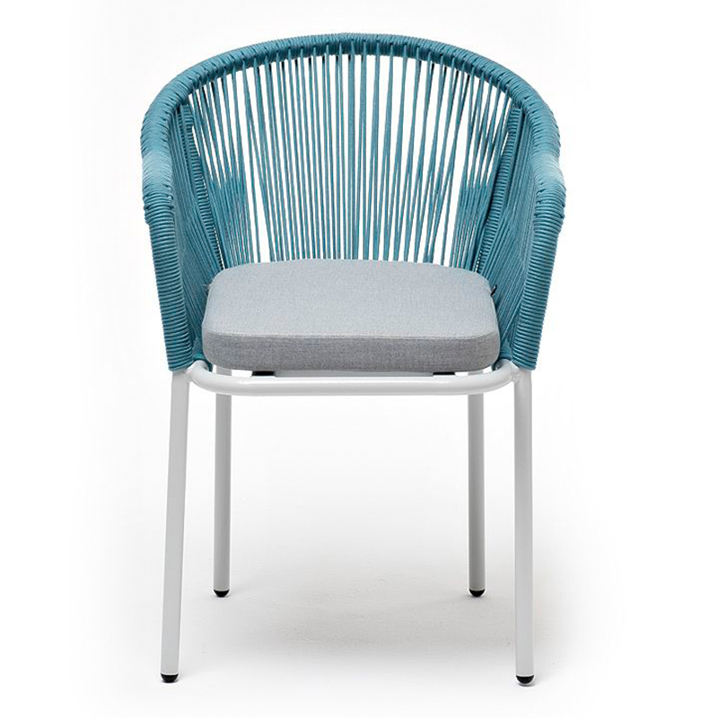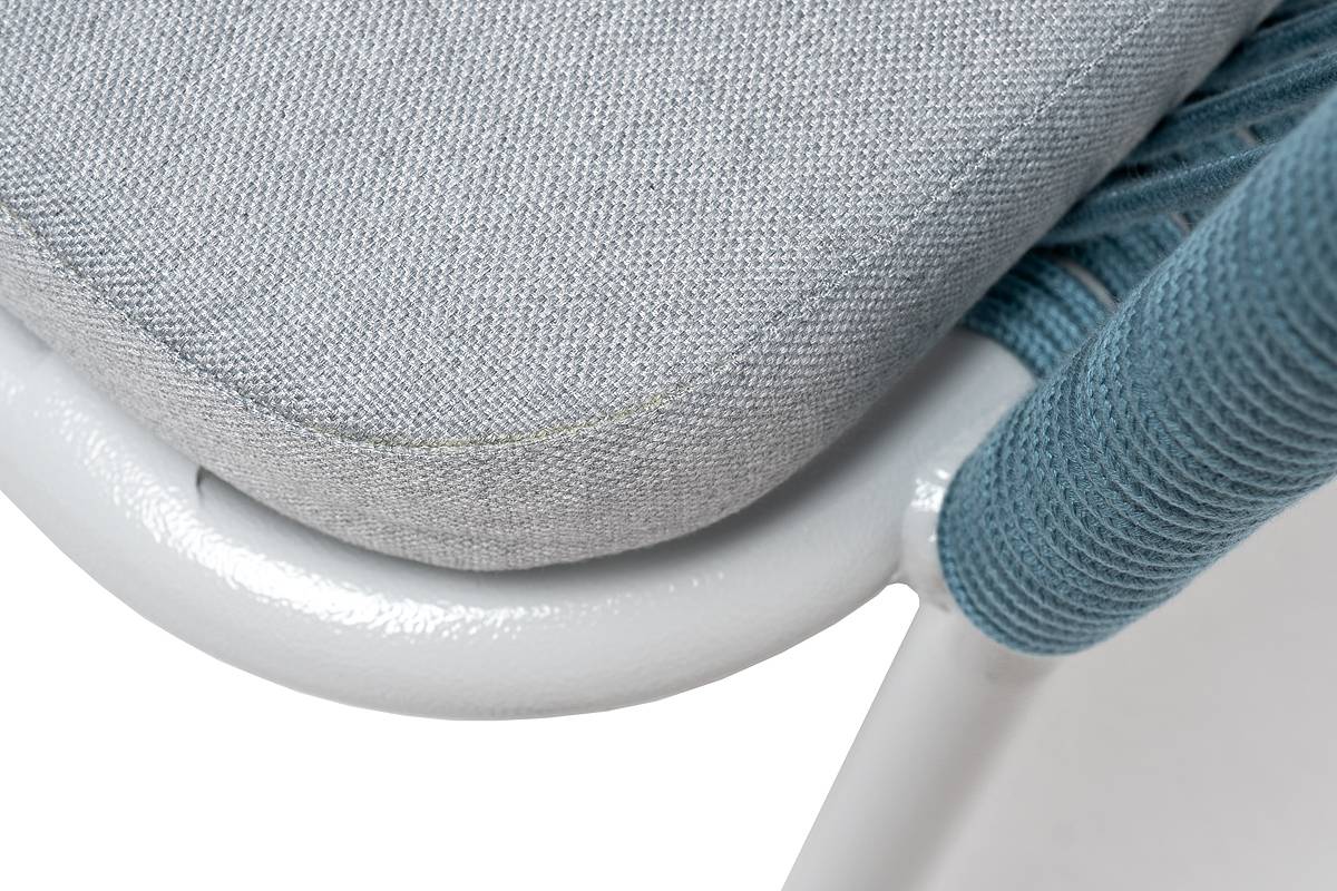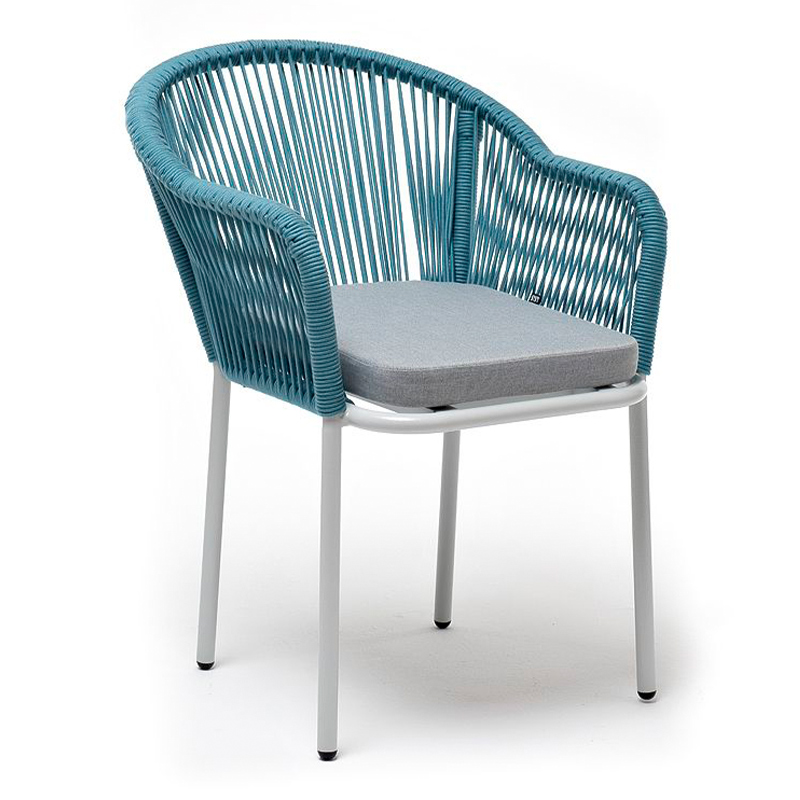 "Лион" стул плетеный из роупа, каркас из стали светло-серый (RAL7035) муар, роуп бирюзовый круглый, ткань светло-серая