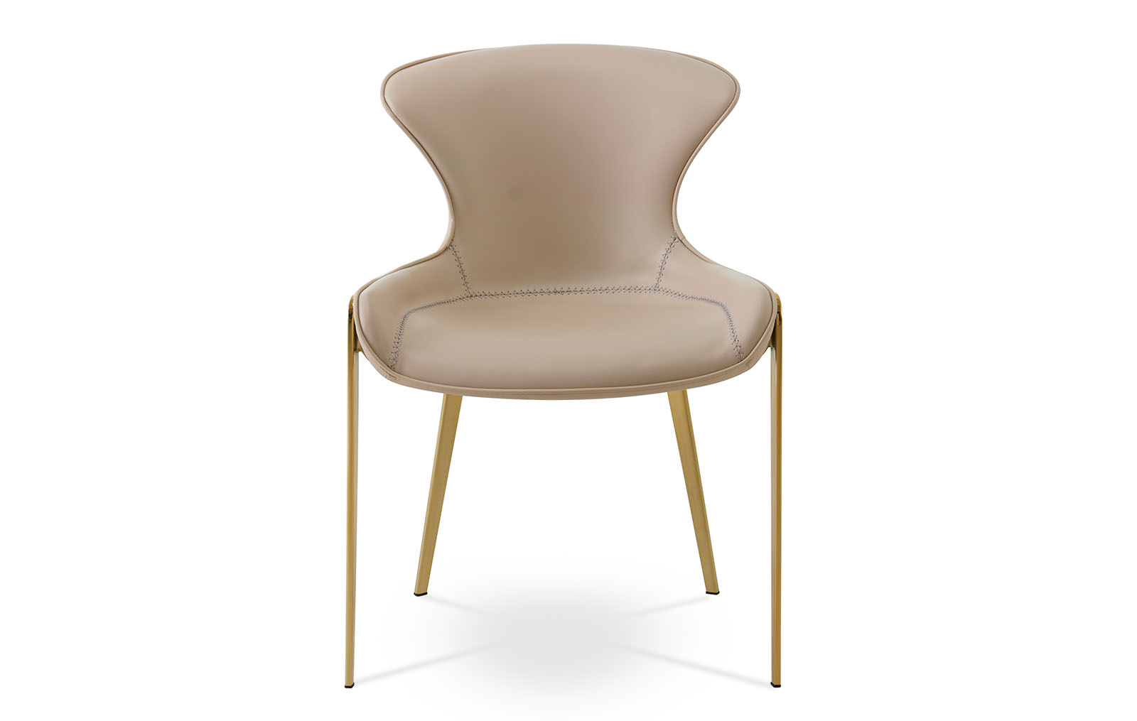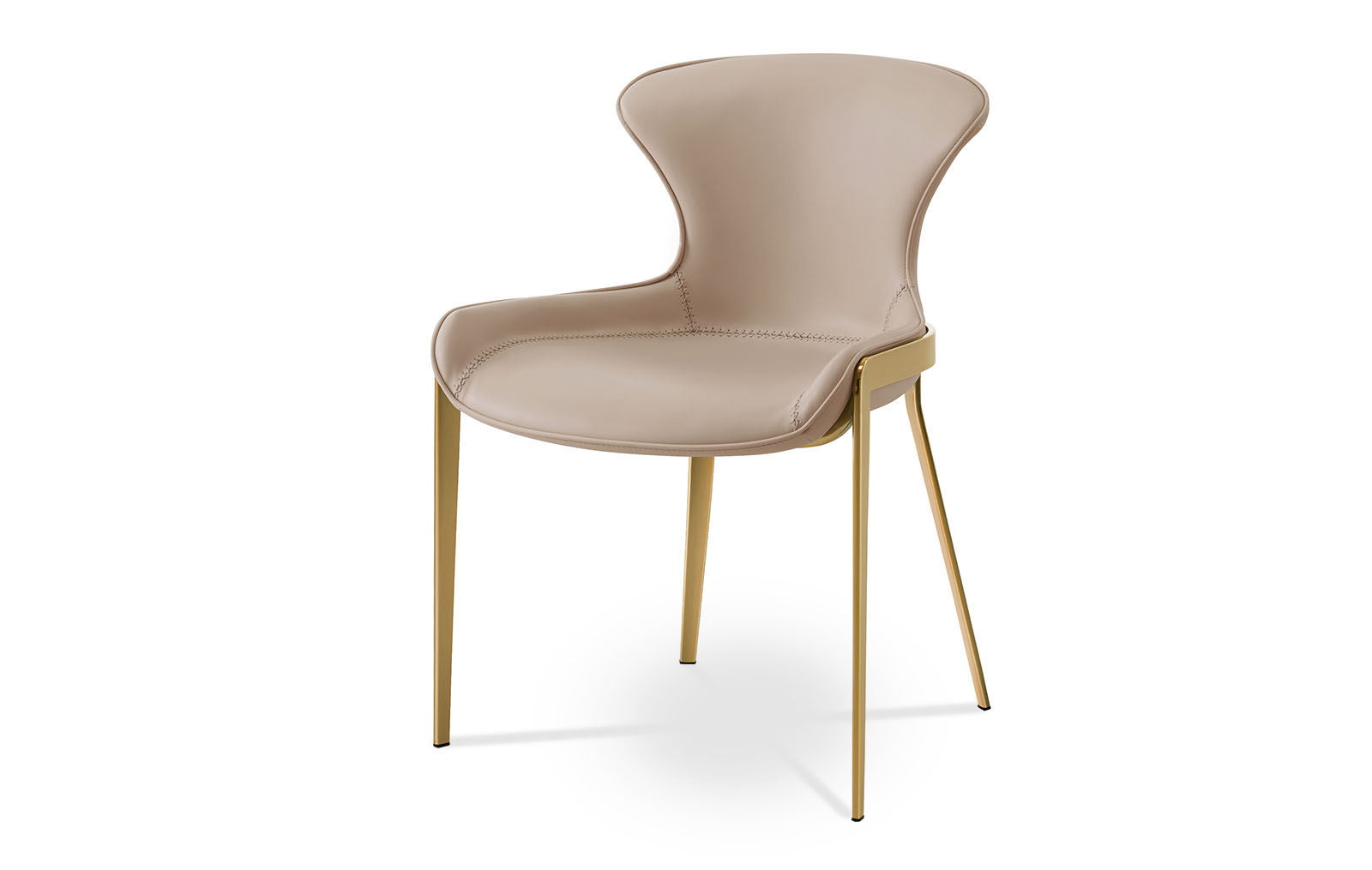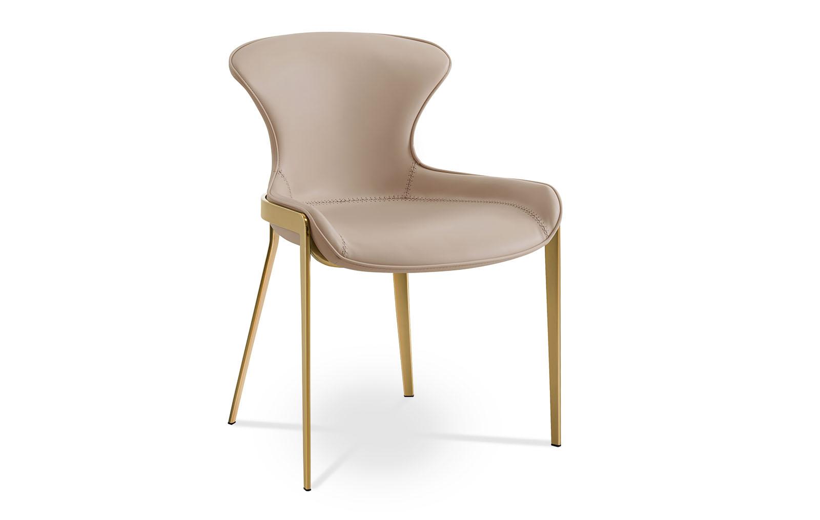 Запросить индивидуальное предложениеВ основе стула – прочная стальная рама золотого цвета. Прочная и легкая в уходе обивка - из качественной бежевой экокожи.
