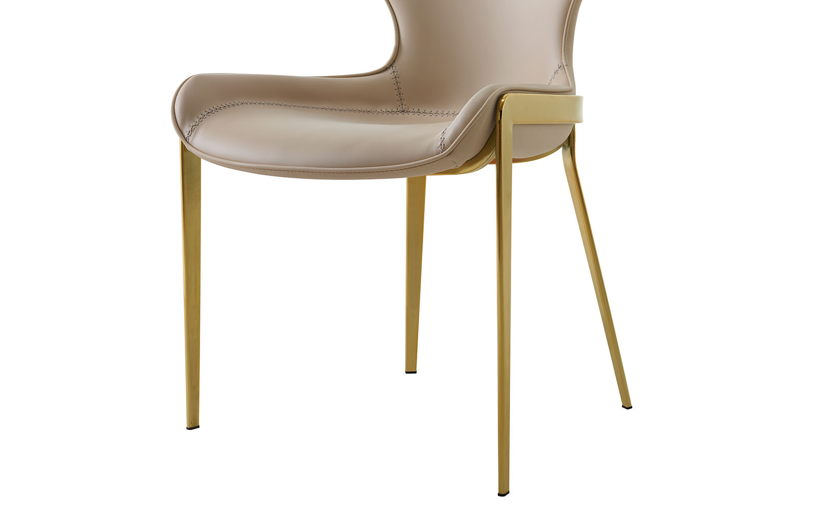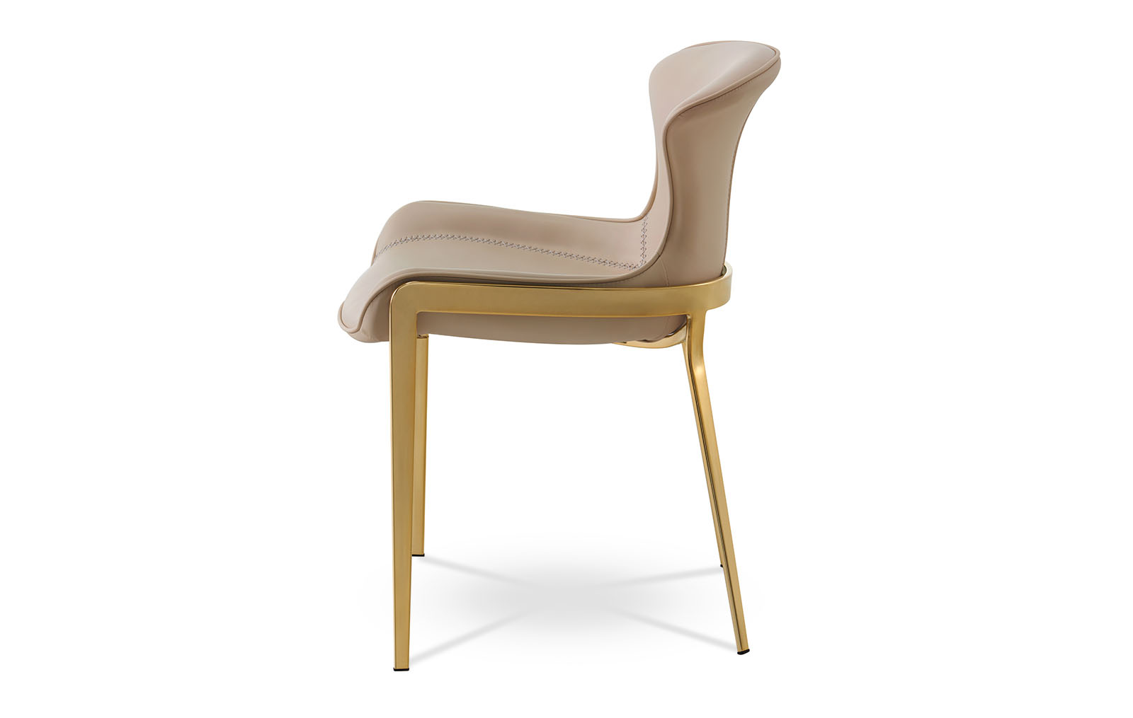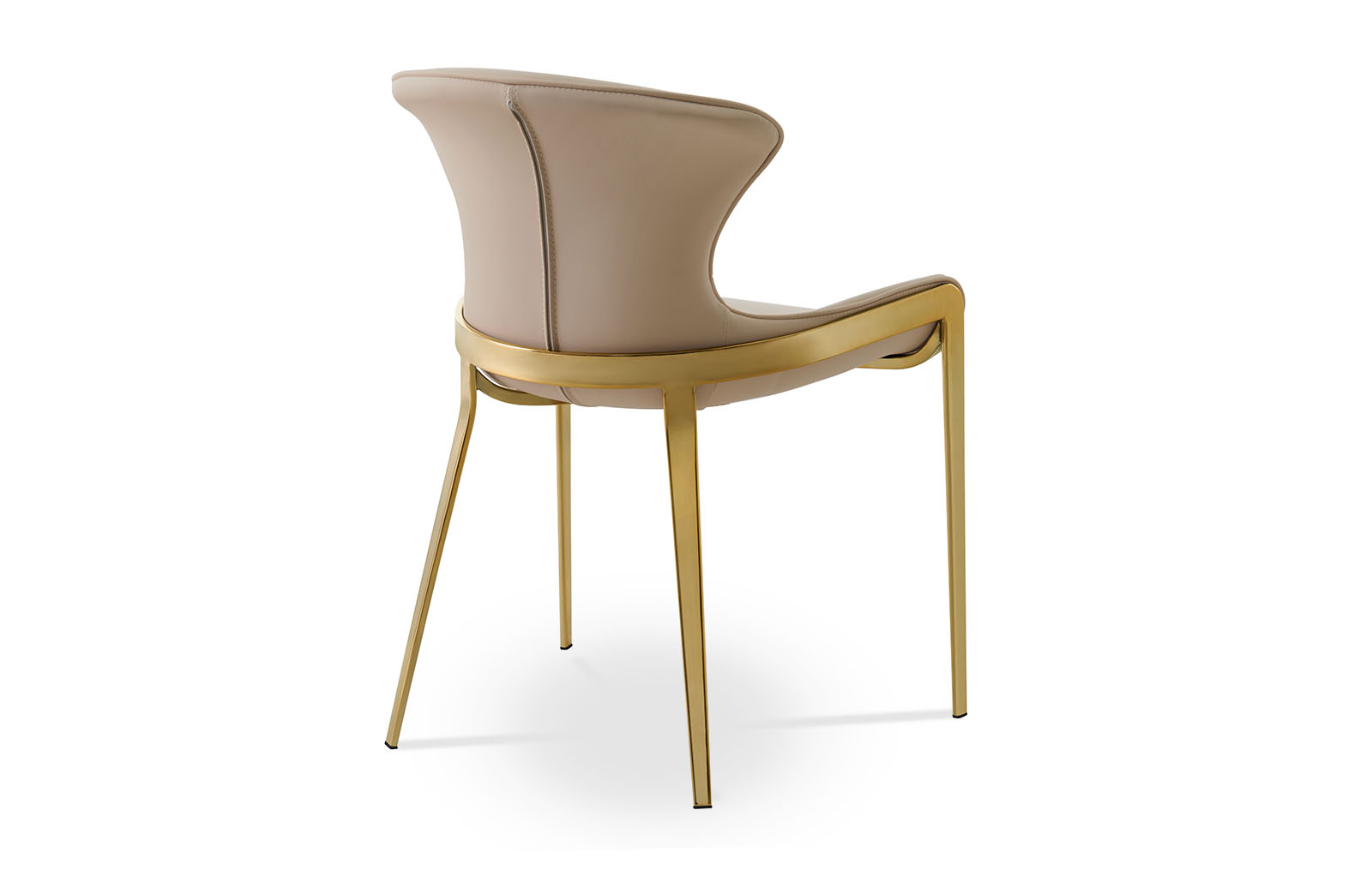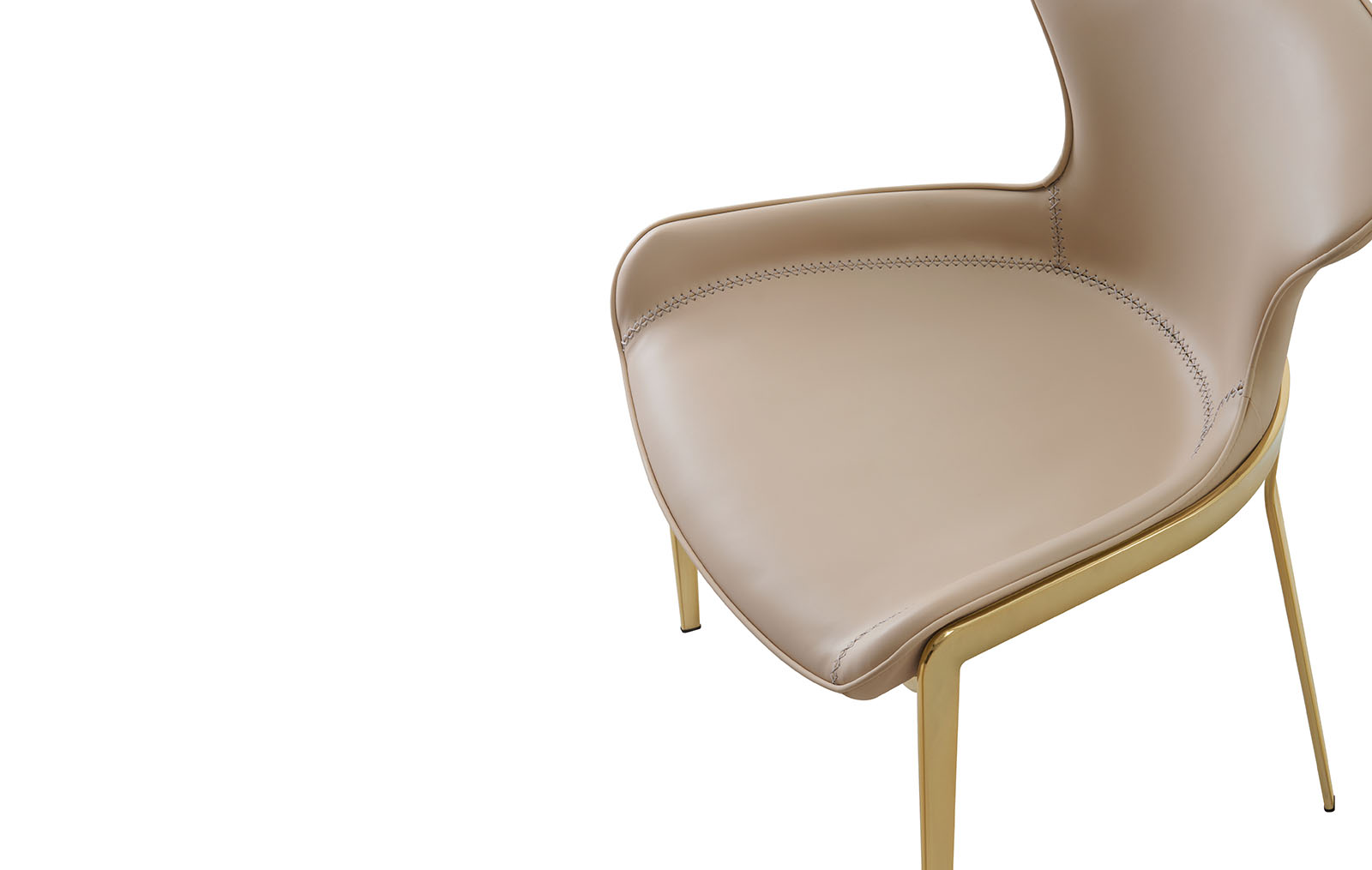 Запросить индивидуальное предложениеВ основе стула – прочная стальная рама золотого цвета. Прочная и легкая в уходе обивка - из качественной бежевой экокожи.