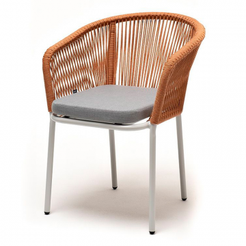 "Марсель" стул плетеный из роупа, каркас алюминий светло-серый (RAL7035) муар, роуп оранжевый меланж круглый, ткань светло-серая
