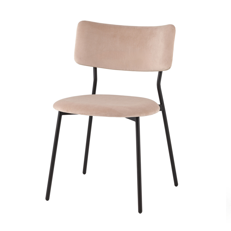 Стул Амелия выполнен в современном стиле с лаконичным и элегантным дизайном, который легко впишется в любой интерьер. Каркас изготовлен из прочного металла, что обеспечивает устойчивость и долговечность. Обивка из мягкого бежевого велюра придаёт стулу изысканность и уют, а антивандальные свойства велюра защищают его от повреждений и царапин, что особенно важно для владельцев домашних животных.