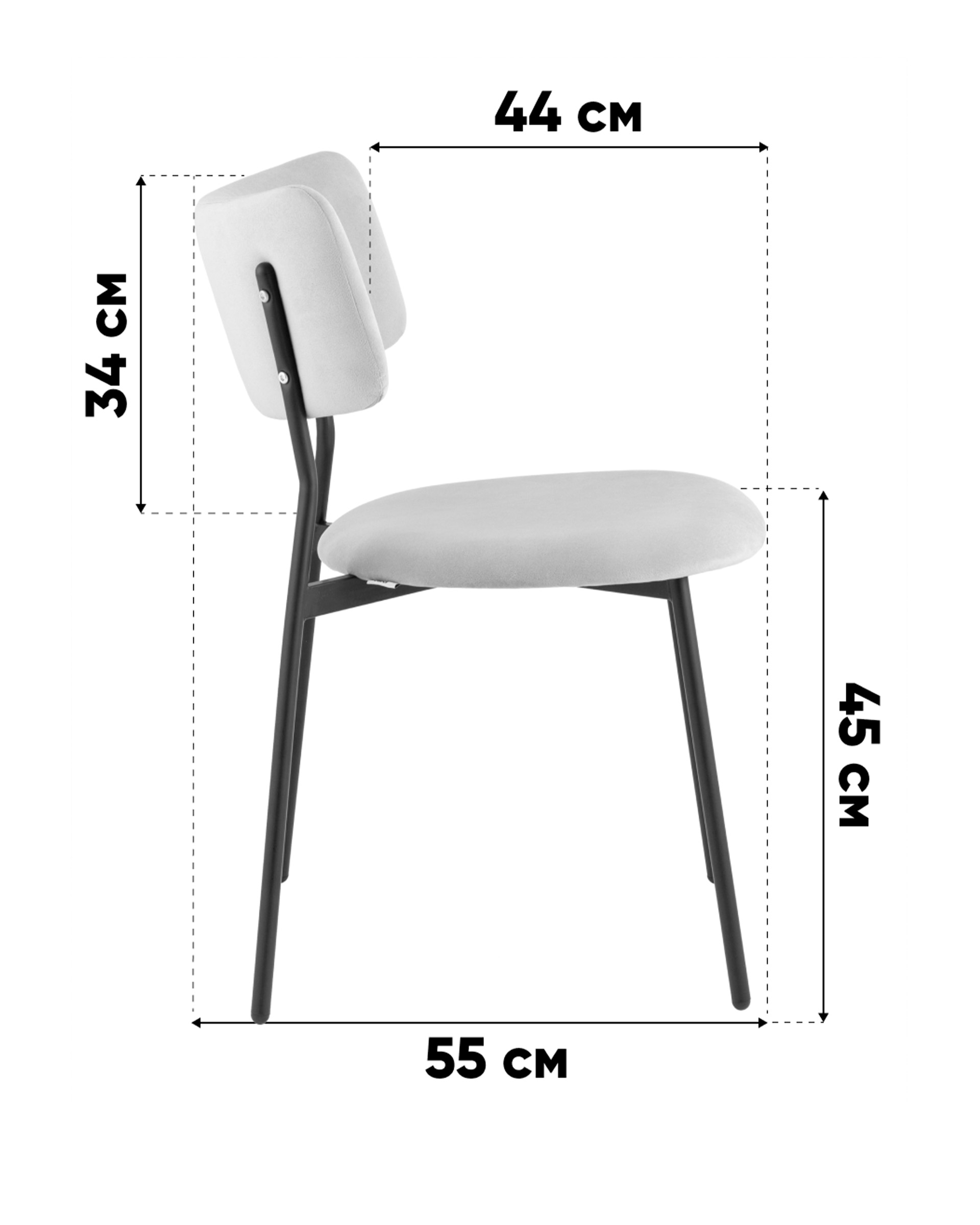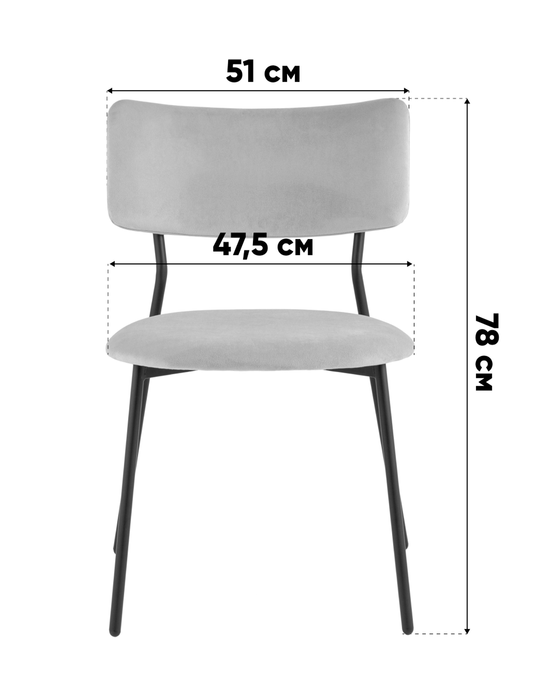 Широкая спинка и отсутствие подлокотников делают стул удобным для любой посадки, создавая дополнительное пространство для свободы движений. Мягкие сиденье и спинка позволяют чувствовать себя комфортно даже при длительном сидении. Высота сиденья составляет 46 см, что подходит для стандартных обеденных столов и обеспечивает удобное расположение.