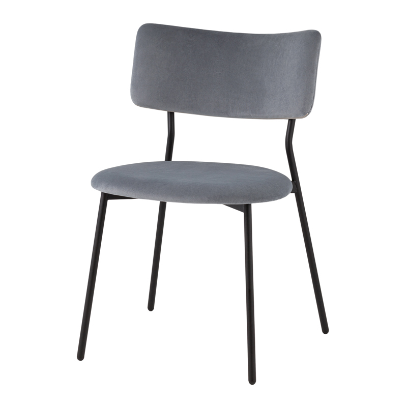 Стул Амелия выполнен в современном стиле с лаконичным и элегантным дизайном, который легко впишется в любой интерьер. Каркас изготовлен из прочного металла, что обеспечивает устойчивость и долговечность. Обивка из мягкого серо-голубого велюра придаёт стулу изысканность и уют, а антивандальные свойства велюра защищают его от повреждений и царапин, что особенно важно для владельцев домашних животных.
