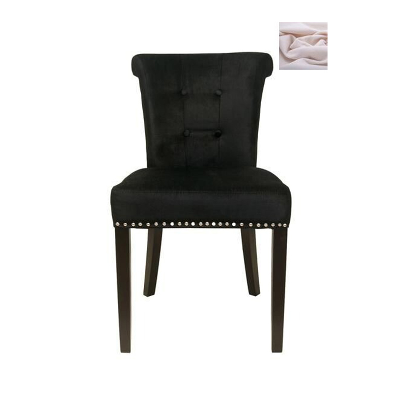 Запросить индивидуальное предложениеСтул розовый Utra с прямыми коричневыми ножками из массива дерева и черной обивкой из ткани на основе хлопка и льна. По периметру изделие отделано декоративными блестящими заклепками, на внешней стороне спинки располагается металлическое кольцо. Верх спинки слегка загнут, внутренняя часть украшена объемной стежкой. Модель предназначена для офисных и жилых интерьеров, подходит для ресторанов и кафе.