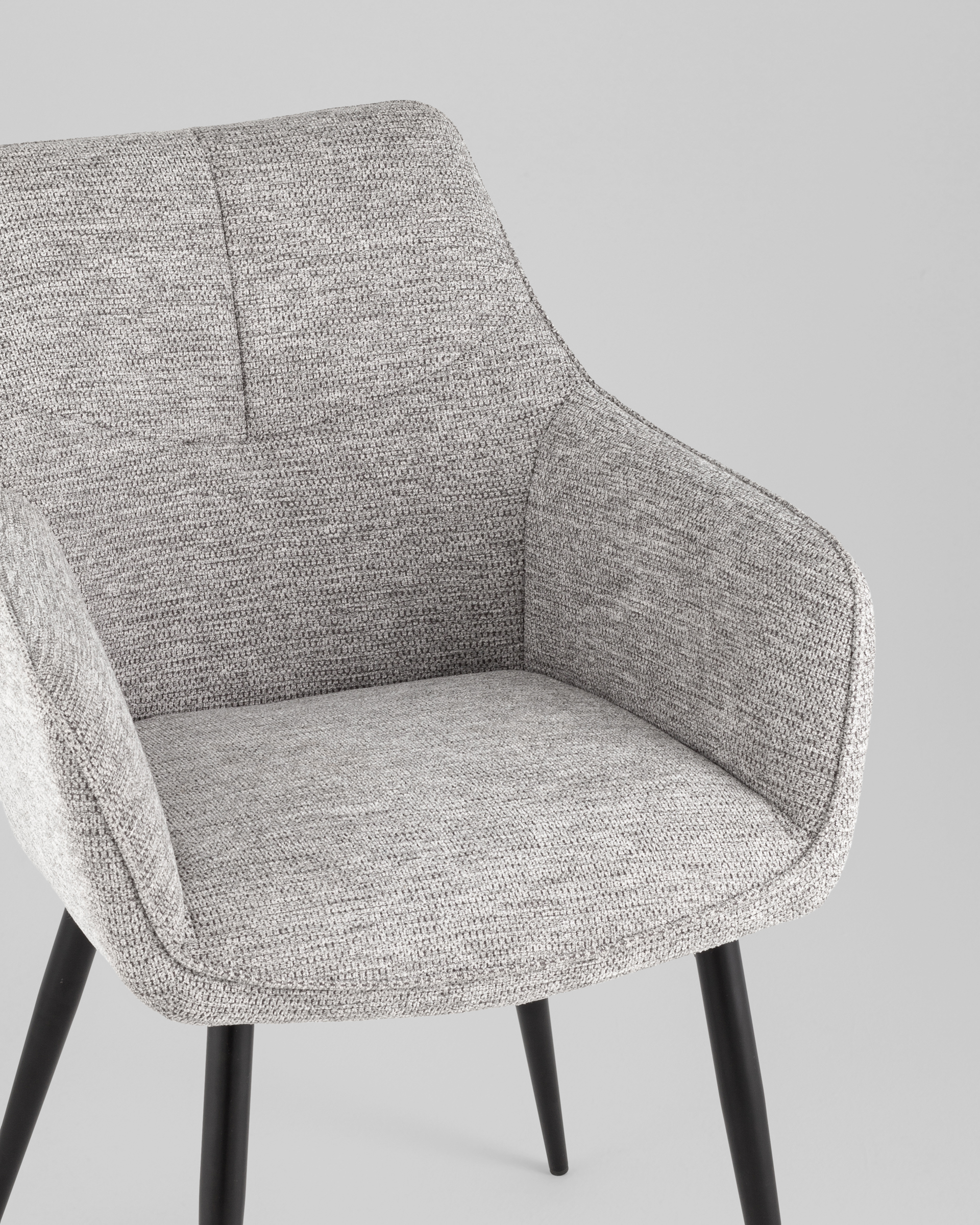 Материалы и комфорт. Стул обит прочной и приятной на ощупь тканью рогожка, которая добавляет текстуру и стильный акцент в интерьер. Мягкое сиденье и подлокотники создают дополнительное удобство, обеспечивая поддержку и комфорт.