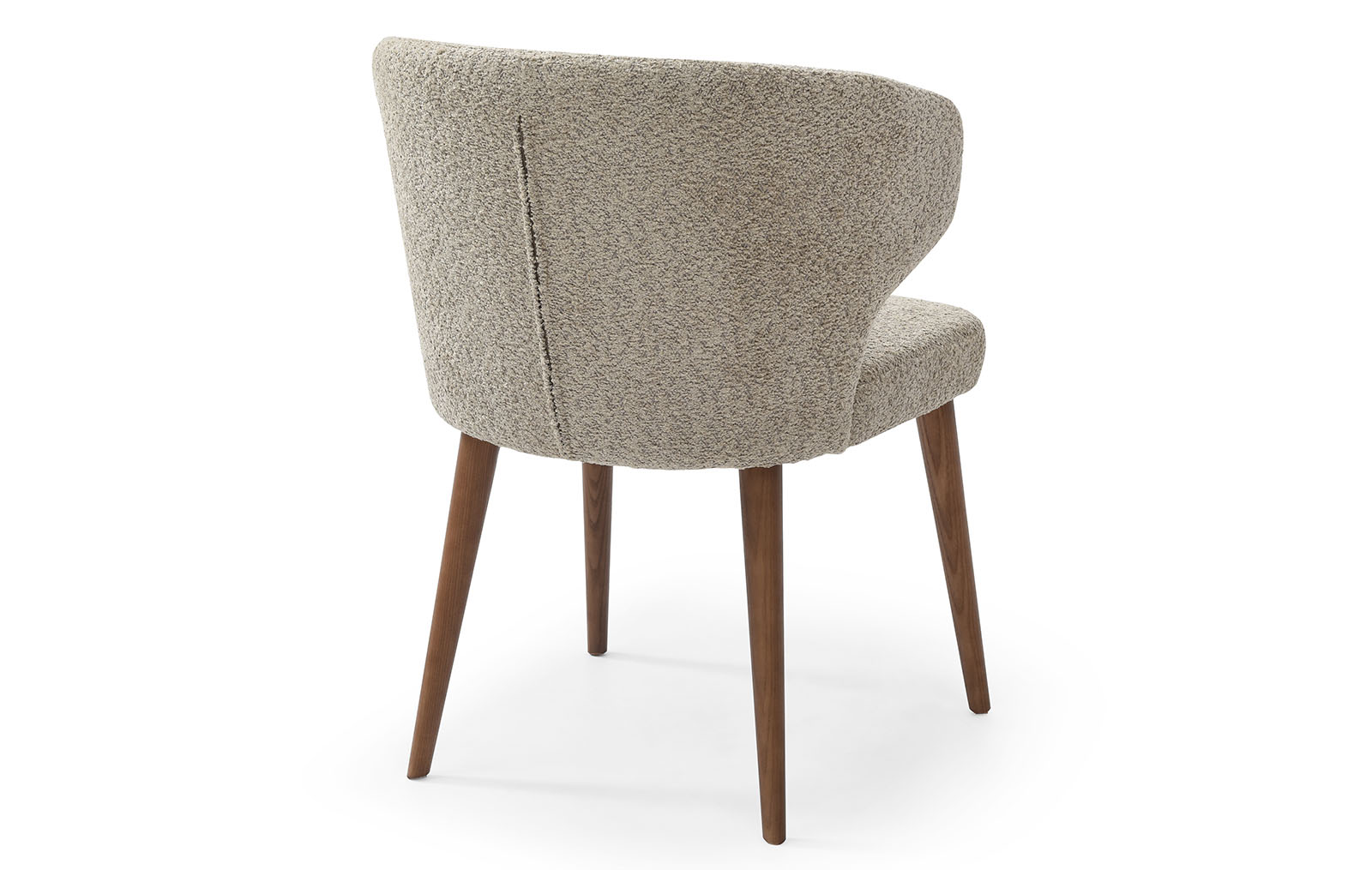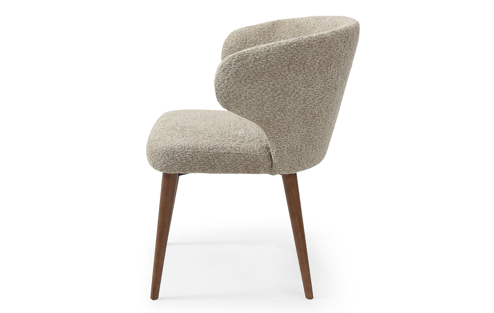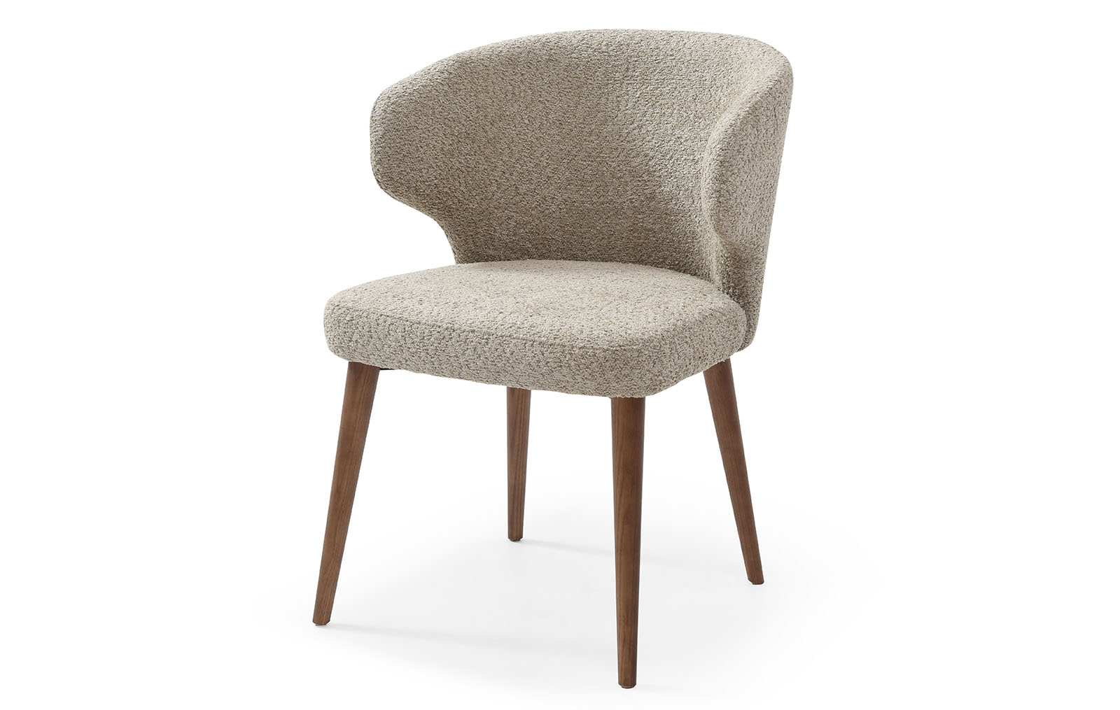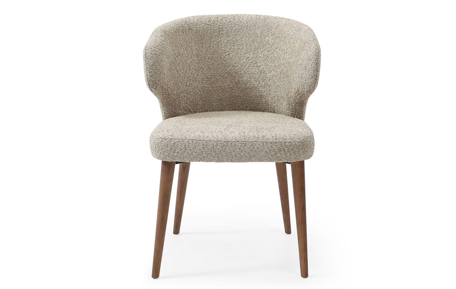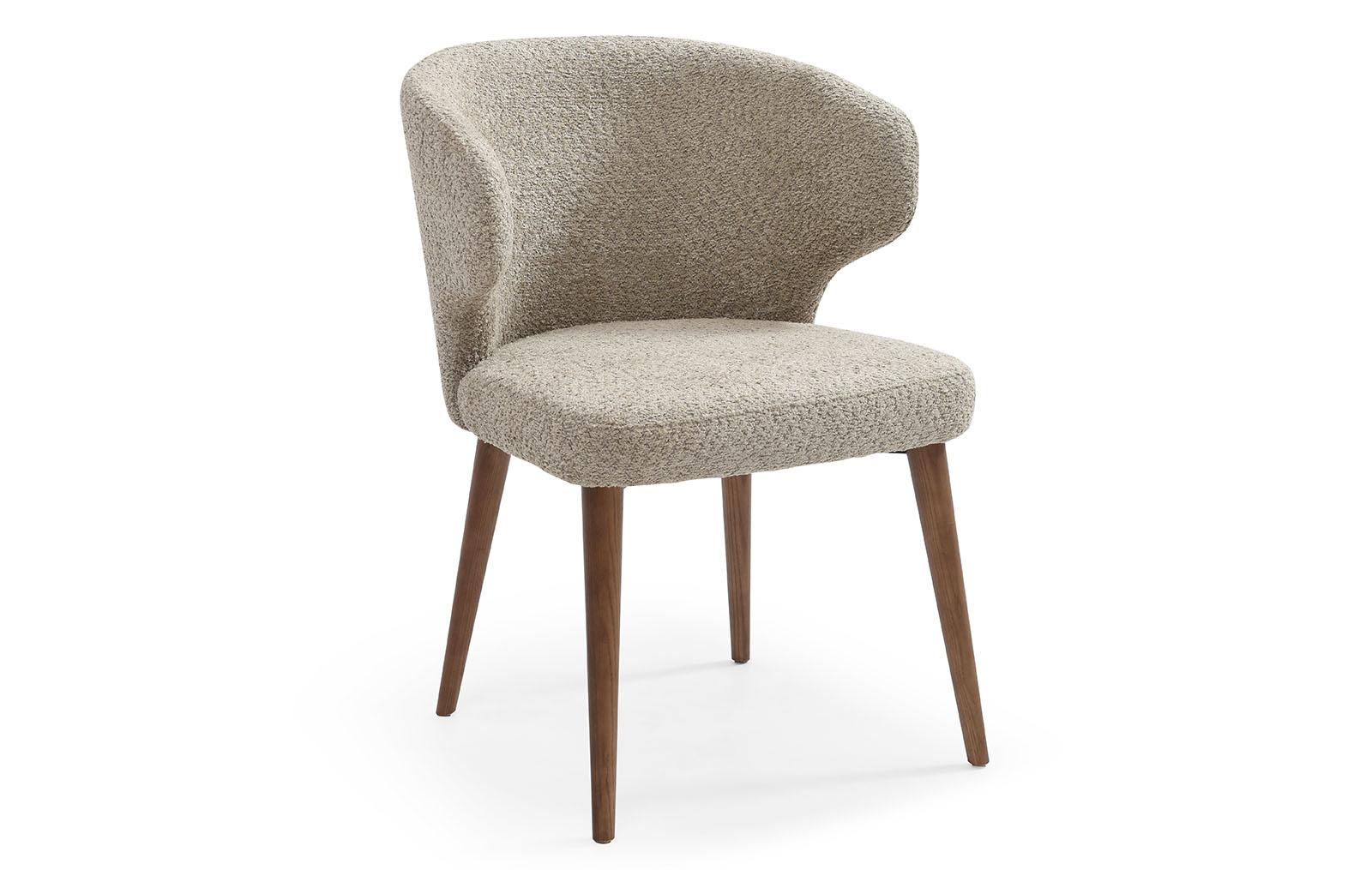 Запросить индивидуальное предложениеОбеденный стул Simona (Симона) имеет обивку из ткани тедди и ножки из дерева, тонированные в оттенок ореха. Форма сиденья, высокие ножки из дерева придают изделию элегантный вид и отсылают к стилю Mid Century Modern. Лаконичный дизайн стульев позволяют гармонично вписать их в большинство современных интерьеров.