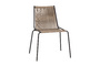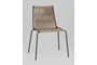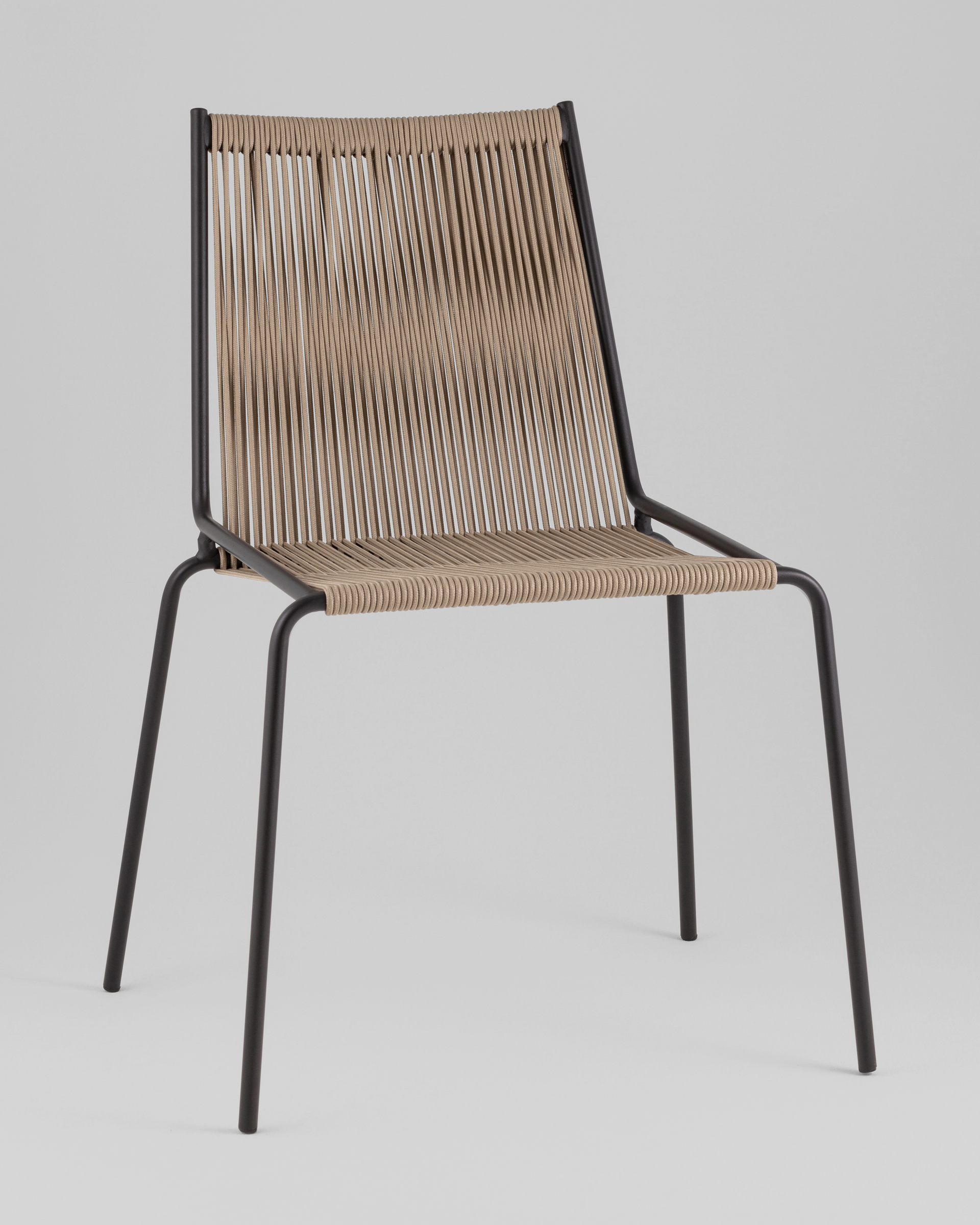 Дизайн и особенности. Стул отличается современным и минималистичным дизайном. Легкость конструкции подчеркивается натянутыми текстильными нитями, которые создают динамичный визуальный эффект. Прямые линии и отсутствие подлокотников делают модель универсальной и компактной. Дополнительное удобство обеспечивает возможность стопирования стульев для легкого хранения.