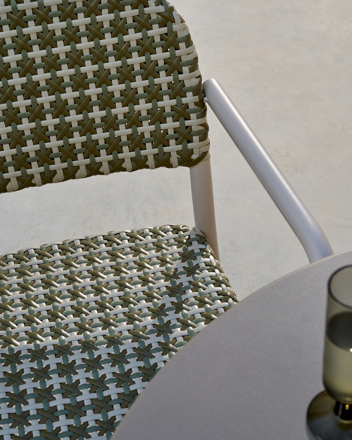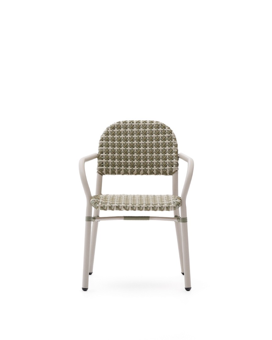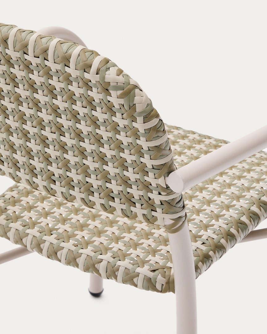 Уличный стул Tuccia бежевого-зеленого цвета из алюминия и искусственного ротанга