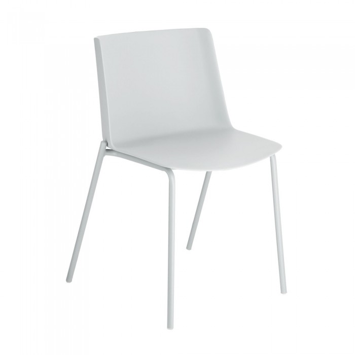 Стул Hannia состоит из цельного пластикового сиденья и двух металлических опор с трубчатой структурой.