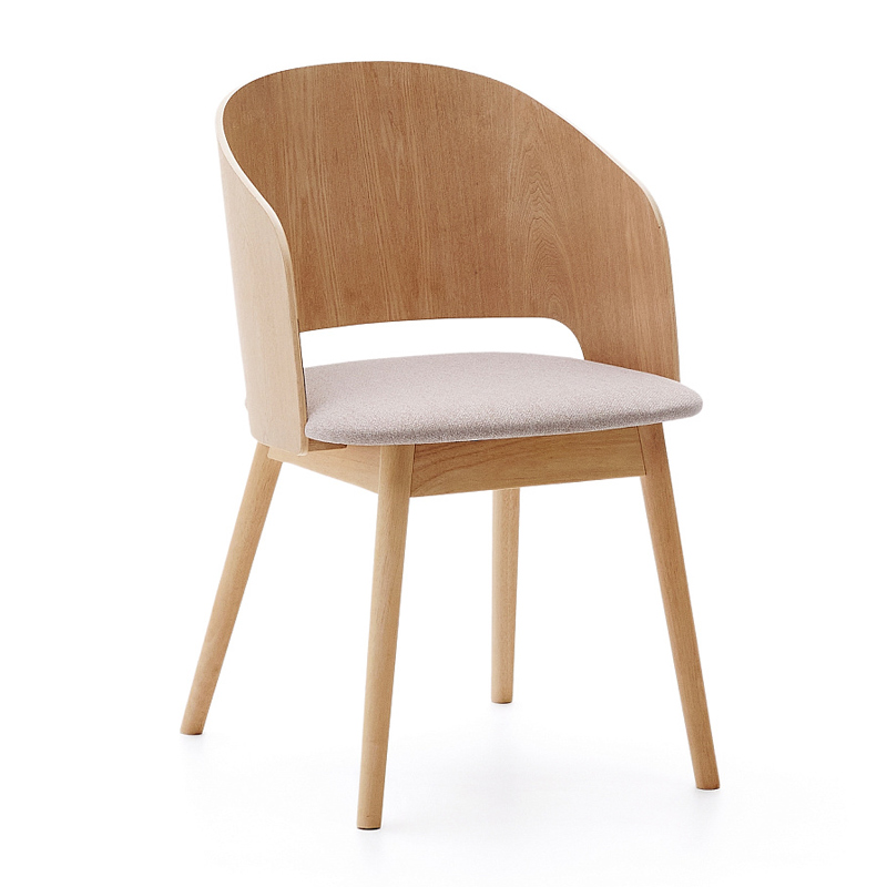 Стул Senoa из дерева в натуральном цвете и бежевого шенилла