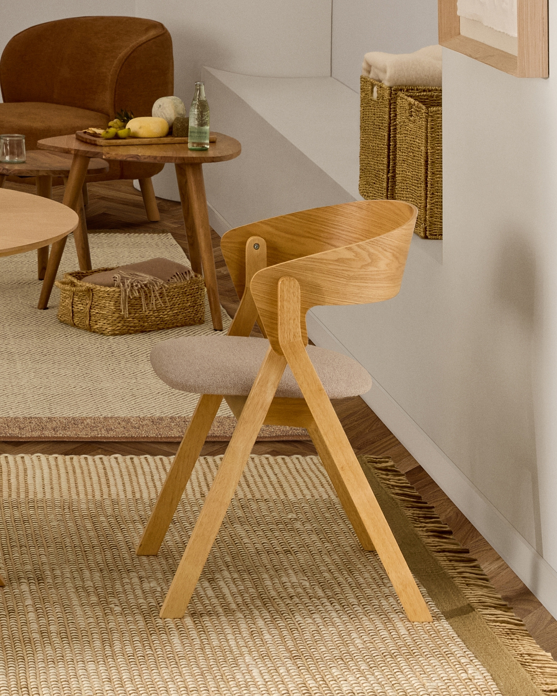 Стул Godia из дерева в натуральном цвете и бежевого шенилла