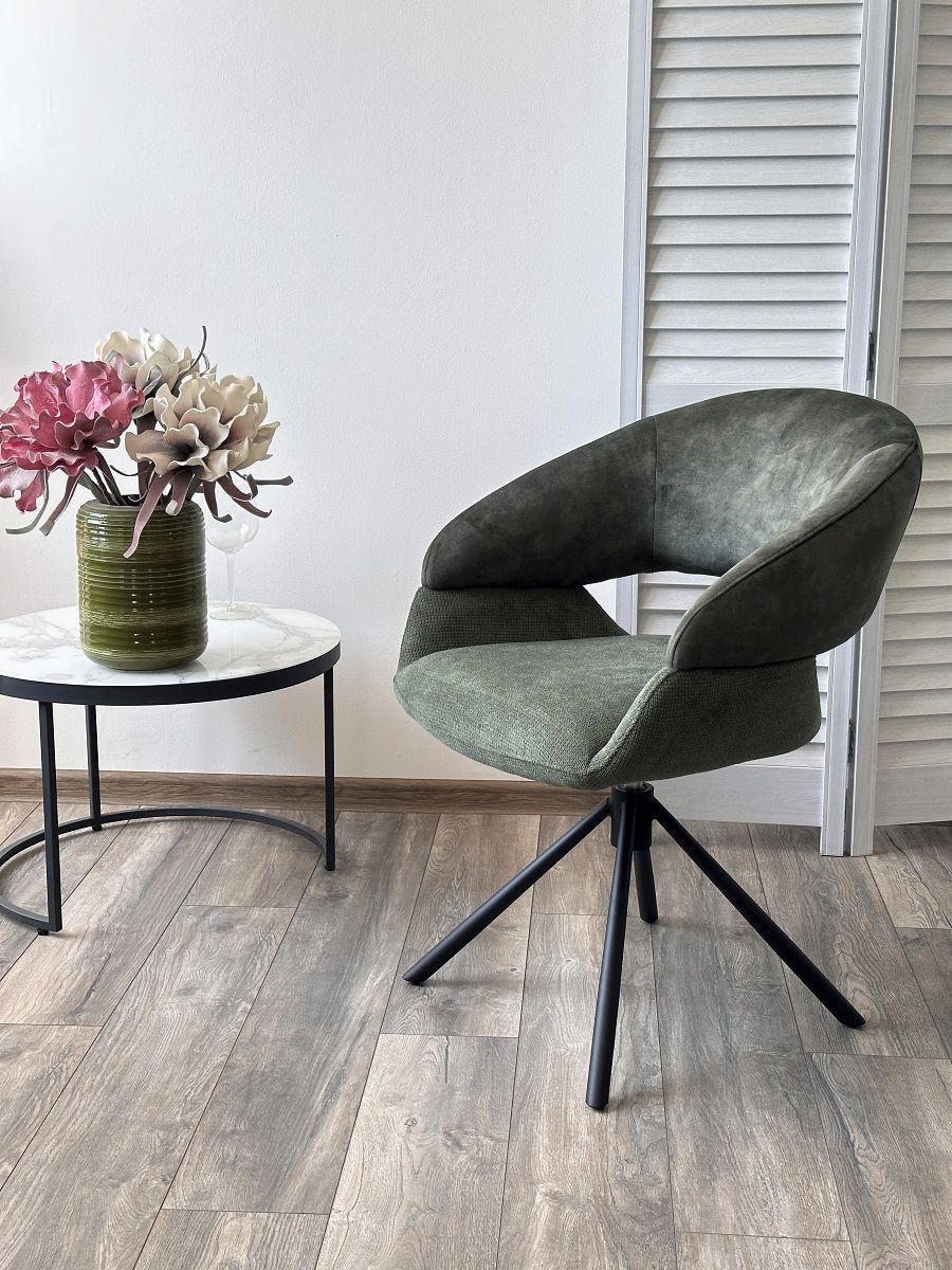 Стул Lotus ткань комби зеленый, поворотно-возвратный механизм 360 градусов