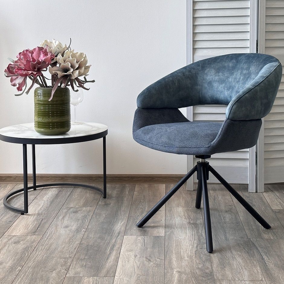 Стул Lotus ткань комби синий, поворотно-возвратный механизм 360 градусов