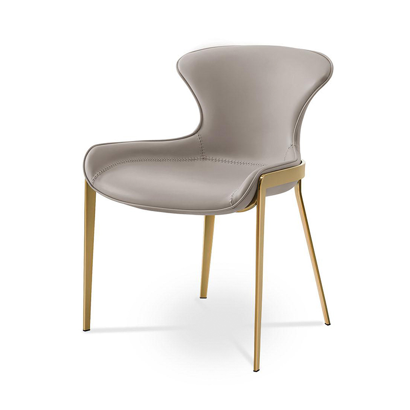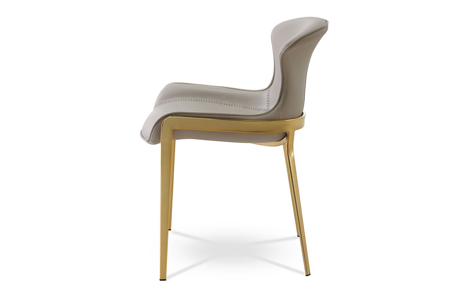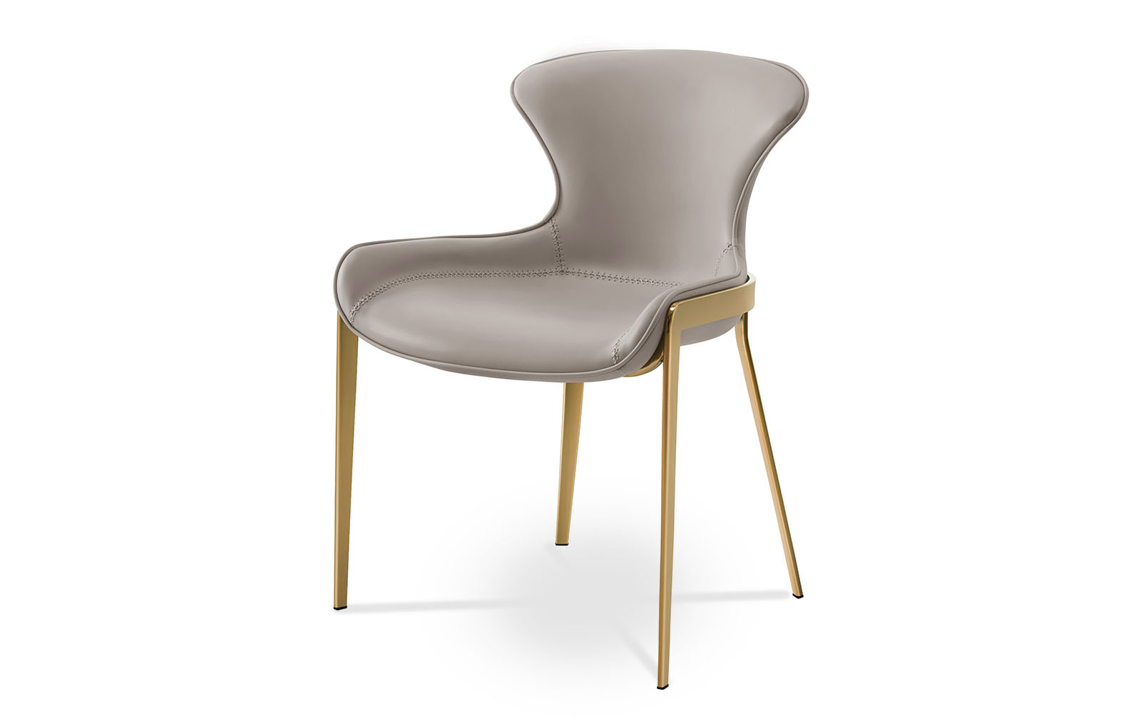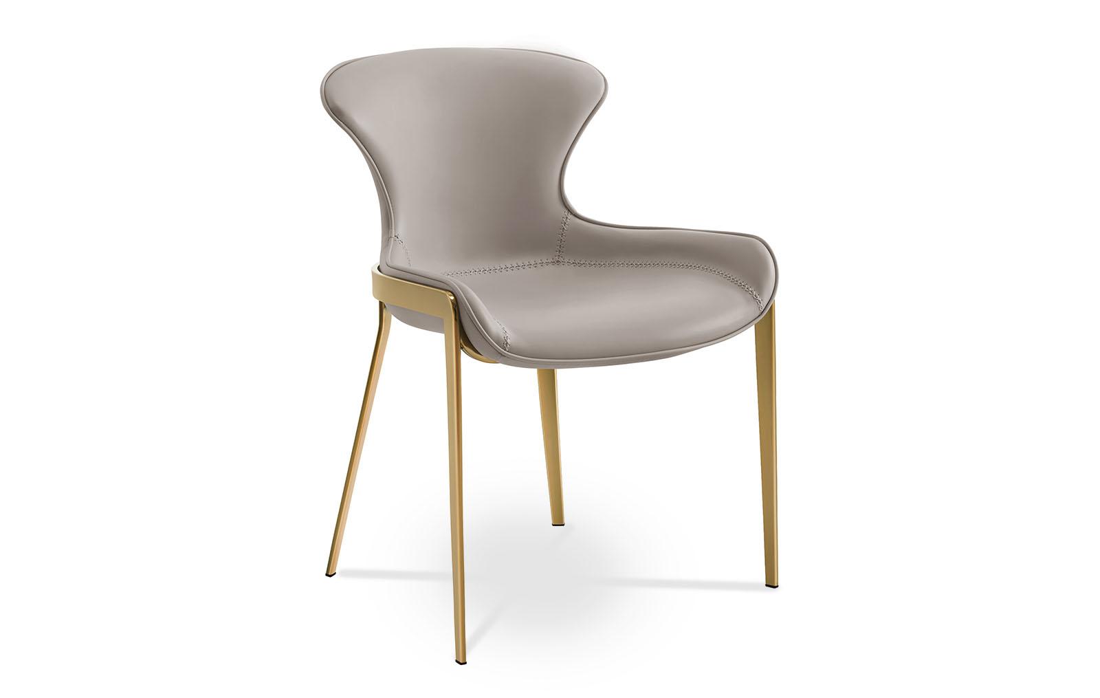 Запросить индивидуальное предложениеВ основе стула – прочная рама золотого цвета из нержавеющей стали. Прочная и легкая в уходе обивка - из качественной серой экокожи.