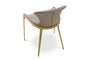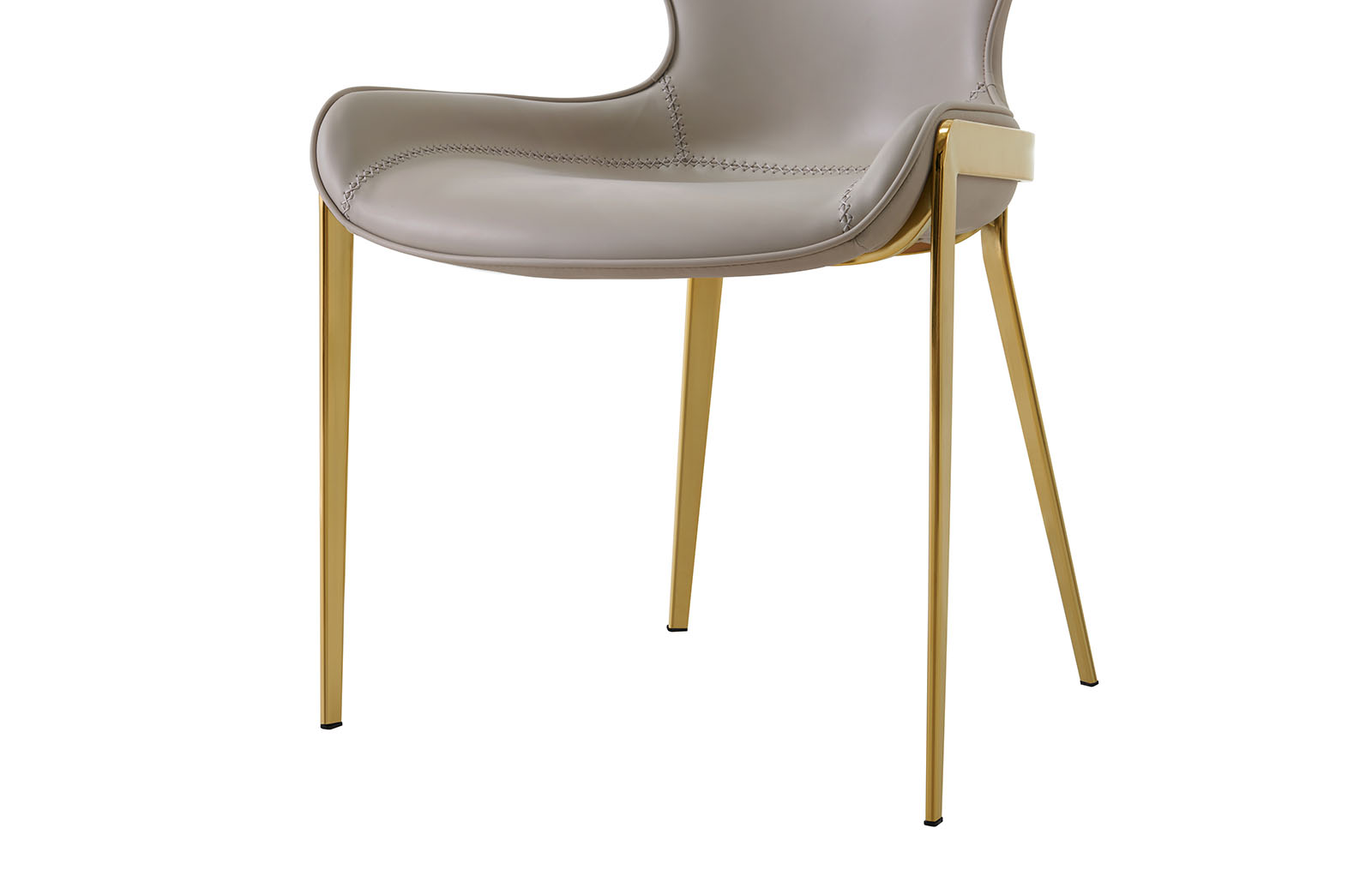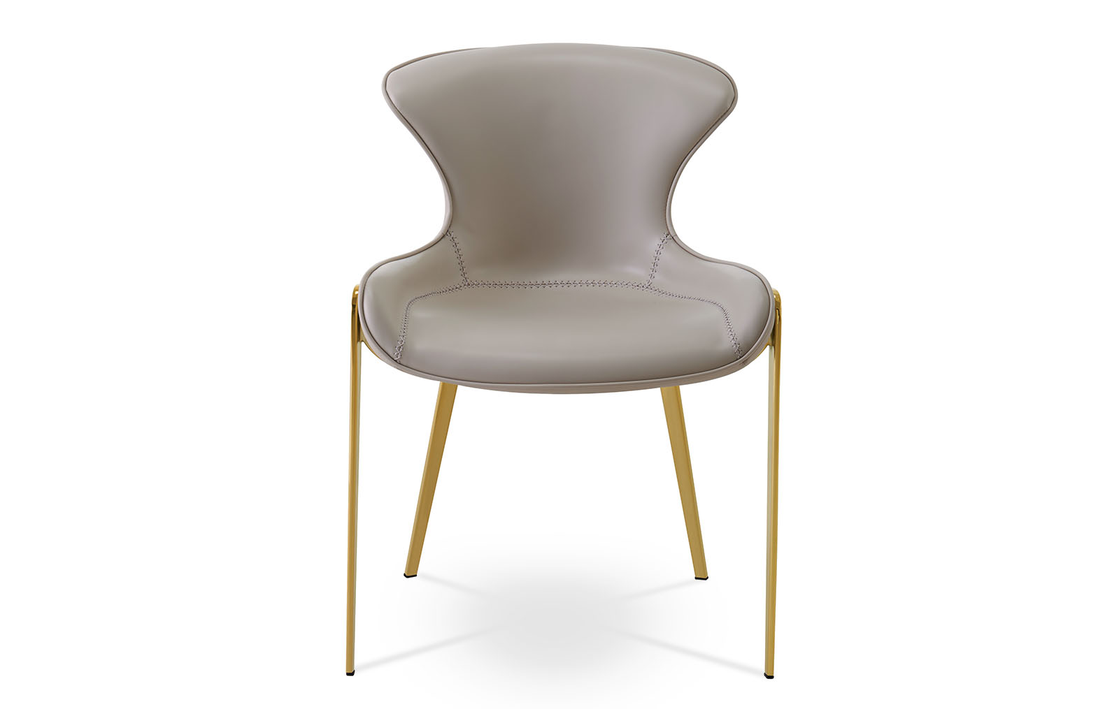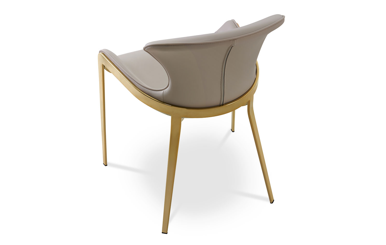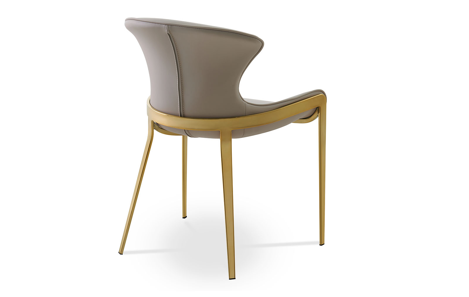 Запросить индивидуальное предложениеВ основе стула – прочная рама золотого цвета из нержавеющей стали. Прочная и легкая в уходе обивка - из качественной серой экокожи.