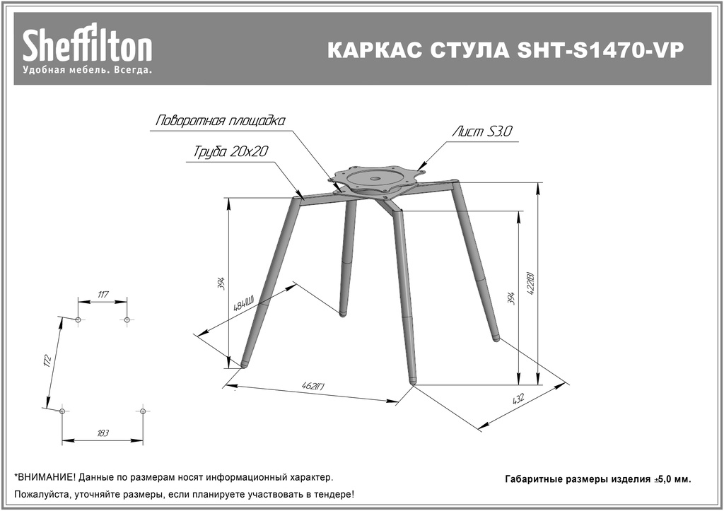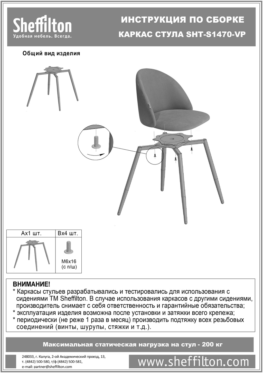 Внимание!!! Каркасы стульев разрабатывались и тестировались для использования с сидениями ТМ Sheffilton. В случае использования каркасов с другими сидениями, производитель снимает с себя ответственность и гарантийные обязательства.